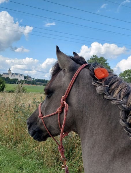 Our beautiful Max is looking for his special person. He is still available as long as this ad is online. Current lunging and riding videos are available. We bought him this year from a family where the girl had unfortunately outgrown him, and we initially wanted to use him for our riding school. However, we quickly realized that he is not happy in that environment. He is very gentle and willing to cooperate, always eager to please. However, he has a lively canter that can be difficult for very young children (ages 4-6) to control. Apart from that, he is suitable and well-behaved for even the smallest riders. Ideally, we would love for him to stay here at our active stable, where he has wonderful horse friends he really likes and feels comfortable. But of course, he can also move to a suitable new home. We could also see him being used for therapeutic riding purposes. Max is a 10-year-old Tarpan-cross pony, approximately 125 cm (12.1 hh) tall, living in a mixed herd. He holds a middle-ranking position within the herd. He is vaccinated and dewormed. With his dappled chestnut color, beautiful thick wavy mane, and dorsal stripe, Max resembles a small, stylish wild pony. He has been regularly checked by an osteopath twice a year (most recently in October 2023). During hoof care, Max remains calm and well-behaved. He is also confident riding alone in the terrain, both mounted and on foot. He reliably walks on any ground in all three gaits and is seldom spooked. He enjoys water and splashes around happily. During trail rides with multiple horses, he walks contentedly in different positions within the group, but maintains a lively pace. He also loads onto the horse trailer without any issues. A test ride costs €35. We kindly ask for a brief application. Inquiries such as "what is the last price" will not be answered. Transport can also be arranged.