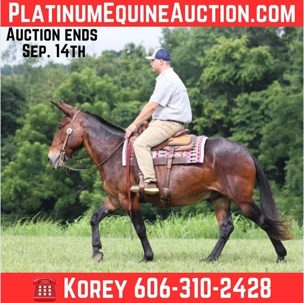 ONLINE AUCTION Place your bids at www.PlatinumEquineAuction.com Starting Bid $3500 Auction ends September 14th, 2025 Need a new saddle? Check out White Rock Saddles on our website or Facebook Clay is a stout built 15.2H, 10 year old, naturally gaited. He has a good handle and neckreins well. He has been ridden down the highways and he is traffic safe. Clay is great on trails and he will cross creeks, ditches, logs and navigate rough rocky areas. He has a natural gait that is super smooth, he will lope as well. He has been exposed to all kinds of wildlife such as deer or turkey or other animals like cows or dogs and will go anywhere that he is asked too. He has been ridden many miles in the mountains of Eastern Kentucky and encountered every obstacle possible on the trail. He will go up or down even the steepest slopes, across deep creeks, over downed trees, and over all types of rough terrain while still being sure footed. Feel free to call Korey Patrick 606-310-2428 with any questions or to make a Buy It Now offer. ONLINE AUCTION Place your bids at www.PlatinumEquineAuction.com Starting Bid $3500 Auction ends September 14th, 2025 Need a new saddle? Check out White Rock Saddles on our website or Facebook