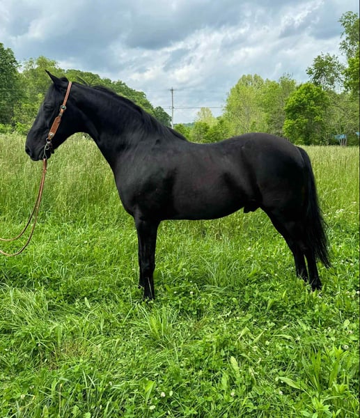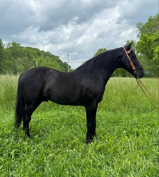 ONLINE AUCTION Place your bids at www.PlatinumEquineAuction.com Starting Bid $3500 Auction ends June 22nd, 2025 Need a new saddle? Check out White Rock Saddles on our website or Facebook! Shadow is a very handsome black Kentucky mountain gelding. He stands a stout 15.1 hands and is 11 years old. This is an incredibly well built gaited horse. He is sure footed, self confident and easy to ride. I absolutely love the way he travels and presents himself. He is a very naturally classy horse and is absolutely smooth as glass. He has logged a ton of trail miles both in groups of all sizes and out alone. This horse is not buddy or barn sour and always aims to please. Shadow is a people loving animal, never meets a stranger. He climbs steep hills, crosses down timber, and calmly walks through water. I have nothing but great things to say about this great gelding. He’s one of the good ones that you do not want to miss! Located in Moscow, OH. Contact Brandenburg Stables Zach 513-508-3684 with any questions. ONLINE AUCTION Place your bids at www.PlatinumEquineAuction.com Starting Bid $3500 Auction ends June 22nd, 2025 Need a new saddle? Check out White Rock Saddles on our website or Facebook!