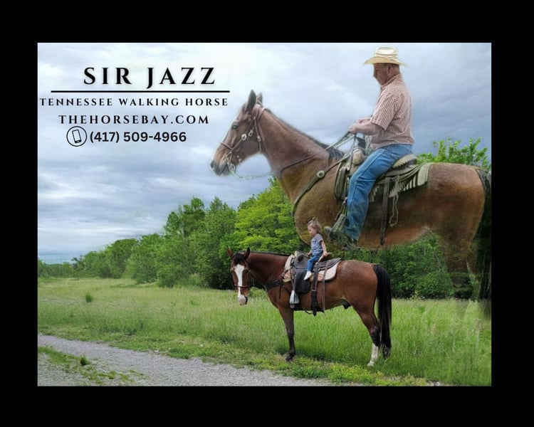 OPEN BIDDING ON THEHORSEBAY,COM. SALE ENDS ON 05/29 @ 3:20PM CT. More information is available on the website, including an UTD vet inspection, Coggins, video, images, and the owner's contact information to ask questions, request information, or make arrangements to come to visit. Sir Jazz, affectionately called Crew, is a 2012 bay-registered TWH gelding. The crew is a true gentleman with both young and old people. He will stand patiently to be saddled, bridled, bathed, mounted, dismounted, and rode. He is a gentle-natured horse who is patient around my two-year-old granddaughter and our dogs on the trail. He has been used to pony her horse while we ride, has been used to pack her, and has had no issues with that. He is a solid, reliable trail-riding companion and is respectful on the ground. He readily loads and unloads alone or with other horses and will stop and back on command. Traffic is not an issue for him either. I would say Crew is husband broke, wife broke, and novice broke. I want to mention that Crew has extensions in his tail due to being pastured out with a yearling who chewed on his tail. He stands at 16.1 and will stretch out for mounting when asked. It is easy to mount on the trail as he will also stand beside a mounting block, tree, stump, gravel pile, etc. He willingly picks up his feet to be shod, bathed, and cleaned before riding or to put boots on. Being a TWH Crew smoothly transitions from a relaxed walk to his gait. I am an inexperienced gaited horse owner, but his trainer, my trainer, and two very experienced TWH breeders have told me he is one of the most naturally gaited horses they have ridden. Crew has an intelligent, easy disposition, good confirmation, and a beautiful bay color with light roan in the summer. He rides out easily alone or in a group setting. Crew will navigate water and steep terrain, including crossing downed trees, with ease. To say that I have not found one flaw with Crew would be an understatement.