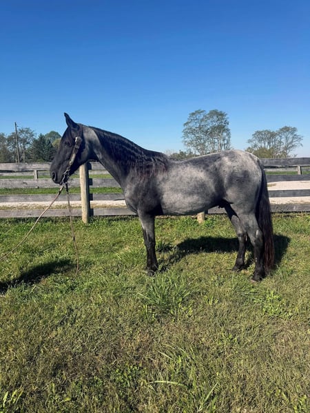"AVAILABLE ON ONLINE HORSE AUCTION AT www DOT MagicHorseAuction DOT com BIDDING OPEN NOW thru TUESDAY | December 9TH! - BUY IT NOW AVAILABLE! *Final price will be determined on auction site* CONSIGNOR CONTACT INFO: Zach Brandenburg 513-508-3684 LOCATION: Moscow, OH River is a extra handsome classic blue roan gelding, this is very experienced trail gelding that truly has logged more trail miles than most 2 or 3 horses combined, he has been to countless big trail rides in several states as well trips out alone as well. River is nice correct gelding that knows his job and is fun to ride. He has a smooth gait and is uncomplicated to ride. River is a forward moving horse that likes to gait when ready, he is an easy keeper and maintenance free. River gets along with other horses and is truly a pleasure to have around, he does great turned out or stalled. River not only stands for mounting but will park out on command making him easier to mount. This horse has been there done that and seen the sights. If you want drama free and worry free here he is wrapped in that beautiful blue roan coat!