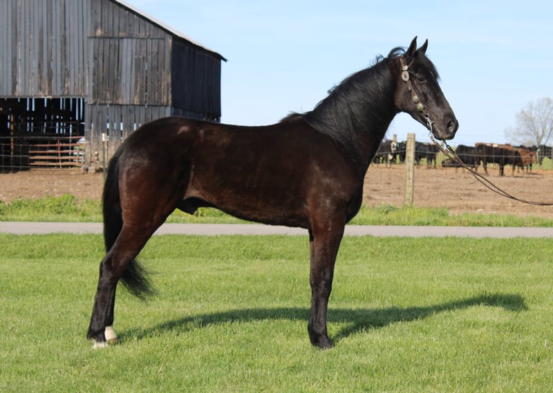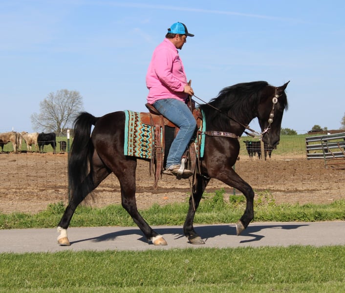 "AVAILABLE ON ONLINE HORSE AUCTION AT www DOT MagicHorseAuction DOT com BIDDING OPEN NOW thru TUESDAY | APRIL 29th - BUY IT NOW AVAILABLE! *Final price will be determined on auction site* CONSIGNOR CONTACT INFO: Mitch Jones “Twisted J Trail Horses” 606-282-4521 LOCATION: Eubank, KY "Big, Pretty, Gentle and good gaited are just a few ways to describe A Secret Sky. Secret is a gorgeous coal black 4 year old TWH gelding that stands 15.1hh. I have had Secret at my house trail riding and exposing him to different scenarios for the past few months. Before I got him he was shown successfully in Model and All Day Pleasure classes. He was shown by both Amateurs and Juveniles. I was lucky enough to be able to get him and have really enjoyed him. He is very willing and wants to learn. That’s the most important thing for me is being willing. Even if he was unsure he wanted to please. I have logged hundreds of miles with him. I have trail rode him all over the state. He will go anywhere you point him. It doesn’t get to rough or crazy for him. You can ride him right through town at the busiest time of day or ease him off a side of a bluff. Secret has the mentality you can about do anything with him. He’s great for just about any level of rider. He’s not what I would consider a dead head but if you know the basics you can ride him. Absolutely no goofiness. He knows his job and likes his job. He’s very good gaited and very fancy. He’s definitely a head turner. He’s the definition of a rail to trail horse. You can show him on Friday night and then wake up and carry him out trail riding and camping. Secret handles super quiet. Great with his feet. No trouble to clip or bathe either. Stands to be mounted and will even park out to be mounted. Has a great woa and is responsive to your legs and seat. If you are looking for a young horse with the brains, looks, and ability you sure don’t want to miss out because it’s no Secret that you will love A Secret Sky!!" "