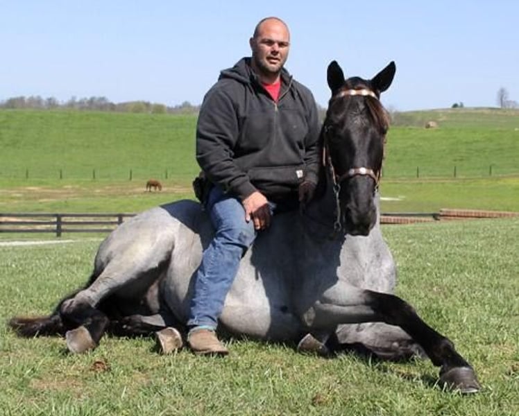 All Ritz Go Blue is a 16hh, 8 yr old, TRUE BLUE ROAN Tennessee Walking Horse Gelding. Blue has been owned by an older gentleman who has had him on the annual Knott County spring and fall ride where you will find 10,000 people and thousands of horses. This gentleman sold Blue so that he could get a small horse that was easier to get on. Blue is easy to catch, clip, bath, tack-up, load, and handle. Blue is a SUPER smooth gaited horse at all speed whether that be his runwalking gait or his 4-beat gait that is smooth upto 10mph, Blue carries hisself wth confidence and collection. He neckreins decent and will also lope. He has been ridden around farm equipment, ATV’s, over large noisy tarps and has also had guns shot off of his back. No matter where he goes or what he does, Blue is not spooky acting. Iv had Blue camping at Big South Fork and he has handled every rough trail with ease that it has to offer. Blue has been exposed to all kinds of wildlife such as deer or turkey or other animals like cows or dogs and will go anywhere that he is asked too. He will go up or down even the steepest slopes, across deep creeks, over downed trees, and over all types of rough terrain while still being sure footed. He has been rode in traffic, and is very traffic safe around cars, semi, log, and dump trucks. Blue is for sure your color!!
