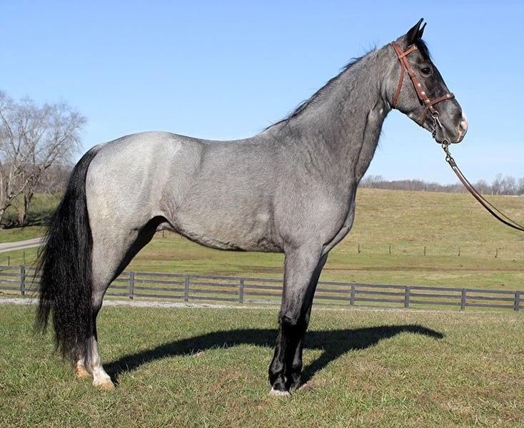 ONLINE AUCTION Place your bids at www.PlatinumEquineAuction.com Starting Bid $3500 Auction ends August 11th, 2024 Need a new saddle? Check out White Rock Saddles on our website or Facebook! I see Smoke but don’t worry “you’re not on fire Ricky Bobby”… SFF Pusher’s Blue Smoke (Blue) is standing around 15.1-15.2h, 2017 model registered TWH and is a True Blue Roan Gelding!!! He is a registered Tennessee Walking Horse and has a good pedigree. I bought Blue back in the spring and have trail rode him all summer, fall and winter. Blue has been trail ridden and camping in Tennessee, Ohio and throughout Kentucky. Blue is easy to catch, clip, bath, tack-up, load, and handle. Blue is a very well broke horse for his age, he has never tried to buck or bolt and he makes few mistakes. Blue has a very smooth and natural 4-beat gait all the way up to 12mph with a nice lope. He moves out easily and will also walk quietly on a loose rein. He has been ridden around farm equipment, ATV’s, over large noisy tarps and has also had guns shot off of his back. No matter where he goes or what he does, Blue is not spooky acting. On the trails he is always great! Blue has been exposed to all kinds of wildlife such as deer or turkey or other animals like cows or dogs and will go anywhere that he is asked too. He has been rode many miles in the mountains of Eastern Kentucky and Tennessee and encountered every obstacle possible on the trail. He will go up or down even the steepest slopes, across deep creeks, over downed trees, and over all types of rough terrain while still being sure footed. He has been rode in traffic and is safe around cars and trucks. He has a great attitude and an easy going personality. He is a horse that you can take home and finish him any way that you want him to be! You can Smoke all you want too here without any risks!!! I bought Blue 4 years ago and we have transitioned to quarter horses, call Scott Aurich 619-987-9797 for more info. Located in Bonita, CA. ONLINE AUCTION Place your bids at www.PlatinumEquineAuction.com Starting Bid $3500 Auction ends August 11th, 2024 Need a new saddle? Check out White Rock Saddles on our website or Facebook!