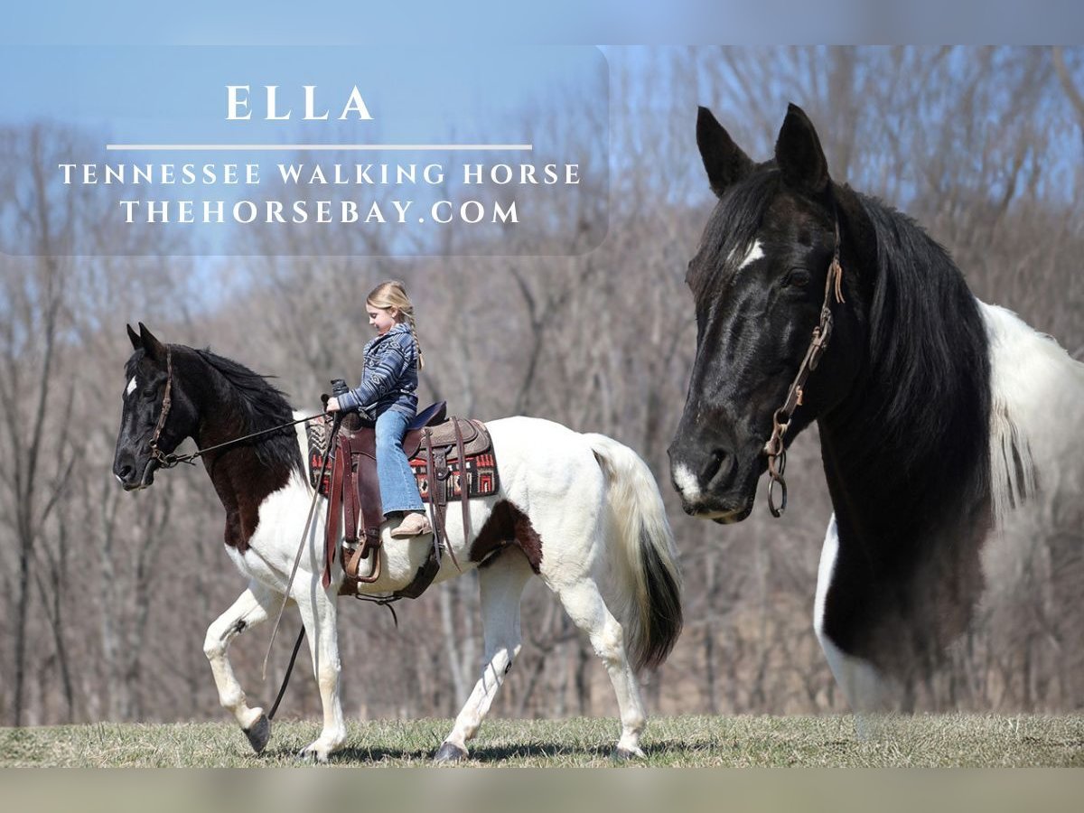 OPEN BIDDING ON THEHORSEBAY,COM. SALE ENDS ON 03/26. More information is available on the website, including an UTD vet inspection, Coggins, video, images, and the owner's contact information to ask questions, request information, or make arrangements to come to visit. If you are looking for a 100% safe horse that the whole family, from baby girl to grandma, can easily ride and enjoy, you have just found her! Ella is the perfect horse for any new rider and the ideal horse to learn on, as she will build your confidence. Ella stands around 15.2h and is a beautiful black tobiano mare. Ella has been ridden throughout Big South Fork in TN, and she knows all about those rough, rocky trails and how to handle herself. Our 6-year-old daughter has trail-ridden her lots of miles without a single issue! Ella will confidently lead the crew or ride peacefully in the back of the crowd. She will go up or down steep slopes, across deep creeks, over downed trees, and all rough terrain while still being sure-footed. She has been ridden in traffic and is very traffic-safe around cars, semis, logs, and dump trucks. If you need a smooth ride that won’t hurt your back??? Ella is the total package as not only does she have the looks, but she also has all the right moves! Ella has that smooth 4-gait that is comfortable for hours in the saddle, and your back and bottom will thank you! She does excellent out in the pasture with our mixed herd. She is super quiet when handling, washing, grooming, tacking up, and loading easily. She also has a great attitude about whatever she is asked to do.