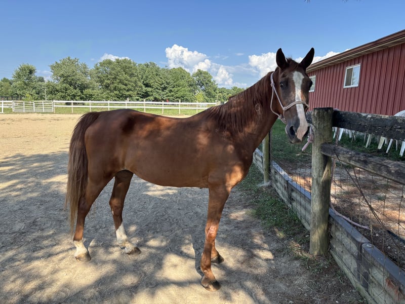 Wonderful 16 year old TWH/Saddlebred mix. Maya is a great trail and companion horse. She loves to be groomed and worked with. She has some very minor arthritis in her right back hock, but has no need for any medications. She is an easy keeper and would prefer to be with other horses during turn out, if that can be managed. She doesn’t mind being alone either. She has ridden on grass, gravel, concrete and arenas. She has been sidewalked with kids on her and been ridden at night. Update: She has been refreshed on her training. She needs an assertive rider, but does great on Bareback and saddle. She can ride on any surface and takes any bit you give her. She is a wonderful ride! Maya is located at Indian Creek Stables, in Trafalgar, Indiana. for more info text or call 603-560-8730