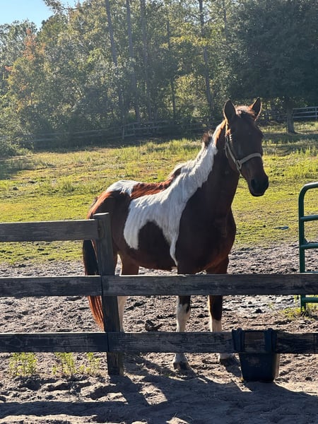 Sweet Companion Mare in Pierson, Florida THE PERFECT PASTURE PAL Bunny is a 16-year-old Tricolor Tennessee Walking Horse looking for her forever retirement home. While she can no longer be ridden due to worn tendons, she is the ultimate "heart horse" and companion. ABOUT BUNNY: * PERSONALITY: A true sweetheart! She gives licks and kisses and has a very kind, sensitive soul. * RAISED RIGHT: She is pasture-raised, sure-footed, and loves the outdoor life. * HEALTH: Current Negative Coggins (done 1 month ago) and well-maintained feet (done 1 month ago). THE IDEAL HOME: Bunny is seeking a quiet pasture and a person to love her. She is perfect as a buddy for another horse or as a beautiful companion for a peaceful farm. * FAVORITE THINGS: She will be your best friend for a peppermint or a butterscotch! If you have a quiet corner of your pasture and a lot of love to give, Bunny is waiting for you. Please call or text the owner Mike or his secondary contact, daughter Brittany