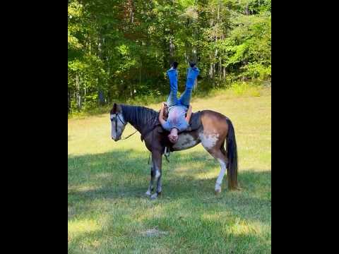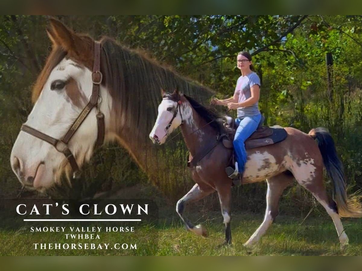 Cat’s Clown is a flashy double registered Smokey Valley Horse and TWHBEA. At 3 coming 4 years old, this mare stands at a solid 15.2hh. She is big, stocky, powerful, and embodies the classic qualities that make Smokey Valley Horses so sought after. Meticulously bred for substantial conformation, a short back, deep chest, strong sloping shoulders, a refined head, and a long, elegant neck. She has that remarkable, stylish presence and calm, people-pleasing demeanor the breed is known for, combined with exceptional stamina, athleticism, and natural four-beat gaits (running walk, rack) that deliver a smooth, ground-covering “magic carpet ride” effect with significant over-stride. What makes Cat’s Clown truly special is her eye-catching splashed-up coat paired with the powerhouse build and forward-moving energy that is the standard in top Smokey Valley Horses, often called “Ferraris you put saddles on.” She’s not just beautiful, she’s an athlete bred for Performance Trail Riding, or endurance racing, offering unmatched smoothness, agility, and endurance over long distances and challenging terrain. Her natural gait is effortless, providing comfort and efficiency on a light keg shoe, making her a standout in a breed already renowned for recreating America’s historic smooth gaited traveling horses. Like all exceptional Smokey Valley Horses, Cat’s Clown gives her riders the ability to cover serious ground on the trails with minimal effort due to the efficiency of her gaits and almost no fatigue in the saddle, so you can ride comfortably from dawn until dusk without ever feeling like you’ve put in a full day’s work! In the arena of everyday handling and real-world usability, Cat’s Clown is as solid as they come. She’s trailer-savvy, traffic-safe, and dog-friendly, can cross water, and has plenty of exposure to all the sights and sounds that come with trail life. She’s been ridden on numerous trails all over Eastern Kentucky and shown at local horse shows. Cat’s Clown stands quietly and patiently for the farrier, vet, bathing, mounting, and dismounting, and is confident in new situations. She has impeccable ground manners and never crowds you while being led. She is very respectful of your space. This mare is just getting started with all of her possibilities. She has a ton of potential to excel further as she matures, whether in endurance, pleasure riding, or more demanding trails in the performance world. Cat’s Clown would make an outstanding trail partner for an intermediate rider with some familiarity with gaited horses. Someone who knows how to set her up properly and can unlock the full range of her smooth gait and get the most out of her responsive, forward nature. If you’re looking for a young, powerful, flashy Smokey Valley mare who embodies a great mind and is ready to hit the trails with you, Cat’s Clown is that rare gem waiting for you!