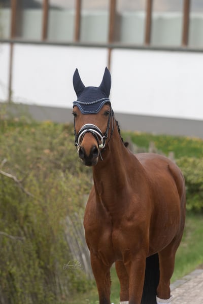 Zum Verkauf angeboten wird dieser 10-jährige Wallach abstammend von Connery x Fashion King, welcher durch eine liebe& unerschrockene Art auf ganzer Linie überzeugen kann! Er zeigt sich in der täglichen Arbeit stets motiviert und lernbereit, so konnten wir mit ihm spielerisch leicht& schnell alle Lektionen der Klasse L erarbeiten. Genauso gerne geht "Conversano" aber auch ins Gelände und zeigt sich hier super verlässlich, was ihn zu dem perfekten Partner für entspannte Ausritte macht. Ergänzend ist er im Umgang super brav und zeigt auch hier keinerlei Unarten. Er lässt sich gut verladen, ist brav beim Schmied& verträglich mit anderen Pferden. Durch sein nettes Wesen eignet er sich gut für Anfänger, Kinder& Wiedereinsteiger. Bislang wurde er nicht Turnier vorgestellt, war aber schon auf Lehrgängen und zeigt sich auch auswärts sehr brav und entspannt. Ein guter Tüv ist selbstverständlich vorhanden. "Conversano" steht in 35708 und kann dort jederzeit besichtigt& ausprobiert werden. Bei weiteren Fragen: 017620052380, auch WhatsApp möglich