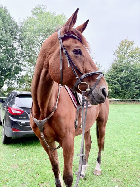 With a heavy heart, I have decided to find a new home for Flagranti. Unfortunately, I no longer feel I am doing him justice. 💔 Flagranti is an impressive Trakehner gelding, distinguished by his size, excellent dressage qualities, and noble appearance. Standing at 187 cm, he is truly a striking presence. 😁 Flagranti has been active in dressage for several years and consistently performs well under saddle and is reliable in handling. He has competed up to L level in dressage with his previous owner. We have also competed in several A-level dressage tests. Despite his age, he remains highly motivated and always eager to give his best! His movements are flowing, rhythmically clear, and expressive – ideal for riders who value quality and performance readiness. When hacking out, he is always trustworthy, confident in the terrain, and can be ridden alone in the field. Currently, he is kept in a paddock but is also familiar with box stall housing. He is healthy and regularly checked, but Flagranti is somewhat difficult to keep weight on and has lost weight after a change of stables. He has gradually regained weight and is now doing well again. His teeth were endoscopically treated last year and checked recently – no findings. He is a real treasure and very well-behaved in handling. My young daughter (2 years old) can groom, ride, or lead him without any issues. Anyone familiar with Trakehners knows they are very sensitive animals. Flagranti is perfect for riders seeking a reliable dressage partner who impresses both sportingly and in character. If you are interested, I look forward to hearing from you to discuss further details and arrange a personal impression. This is definitely NOT an emergency sale! Priority goes to the right home! I want to give Flagranti one more chance to show what he can do, to experience many wonderful moments with him, and to be there for him. ♥️ I am offering Flagranti with all his complete tack included in the price.