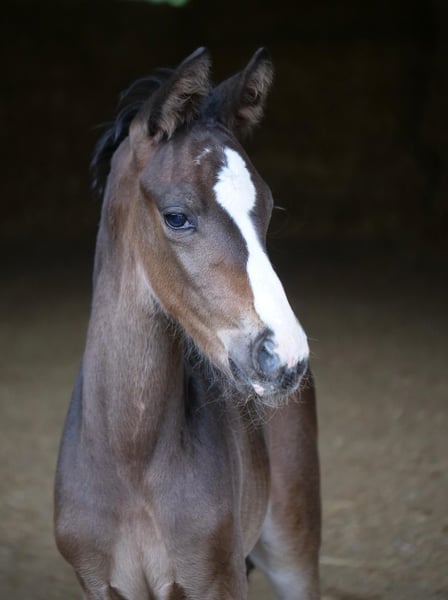 Een hengstveulen van Prince Patmos uit Räuberkunst van Lossow met veel uitstraling. Topatleet met een uitmuntend, modern zijprofiel en lichtvoetig gangwerk, altijd bergop, levendig en op tijd. Premium veulen, beoordeeld met 58 punten. Deze hengst in spe is dus een kandidaat voor iemand die op zoek is naar een sportman.