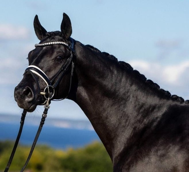 Zum Verkauf steht unser 165 cm großer Trakehner Harrison mit hervorragender Perspektive für den gehobenen Dressursport oder die ambitionierte Freizeitgestaltung. Mit seiner schwarzen Jacke, seiner Präsenz und seinem freundlichen Wesen zieht er sofort alle Blicke auf sich. Er ist sehr zugewandt und menschenfreundlich, stets aufmerksam und angenehm im Umgang. Ein echtes Herzenspferd mit klarem Kopf. Er wurde bereits am Boden gearbeitet, ist verladefromm und zeigt sich im täglichen Handling unkompliziert. Seine sportliche Perspektive wird durch eine hochkarätige Abstammung untermauert: Vollbruder des Prämienhengstes Hallifax, der seine durch Championatstitel in jugendlichem Alter initiierte Dressurkarriere jüngst mit Erfolgen in Klasse S krönte und innerhalb der Vererber-Garde Prominentenstatus genießt. Seine charismatische Mutter stand als Championesse im Rampenlicht des Dänischen Stutenchampionats, war Siegerin der Leistungsprüfung, wurde als Preisspitze der Reitpferdeauktion des Trakehner Hengstmarkts gefeiert (NMS‘15/45) und zählt zu den wenigen Töchtern des internationalen Grand Prix-Helden Aston Martin (Helene Melsen). Aktuelle Röntgenbilder ohne Befund liegen vor. Ein Pferd für Reiterinnen und Reiter mit Ambitionen im Dressursport, die neben Qualität auch Charakter schätzen. Bei ernsthaftem Interesse freuen wir uns über eine persönliche Kontaktaufnahme.