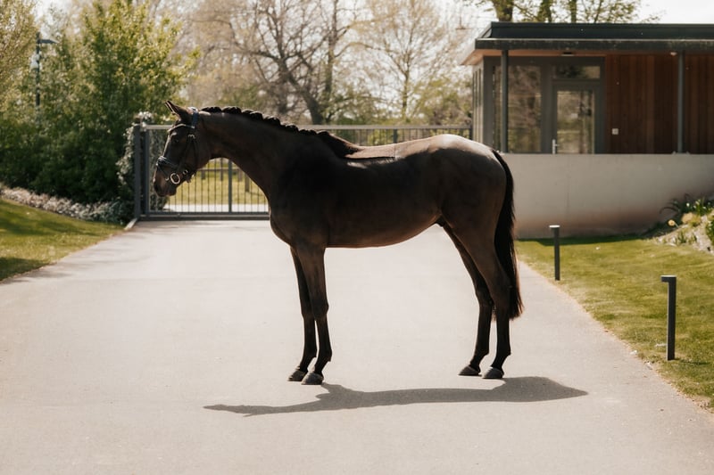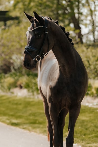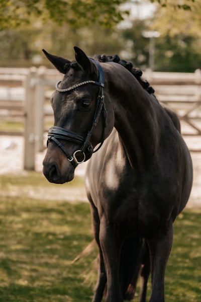 SILENCE, eine auffallend typvoller Wallach für den Dressursport in edler Aufmachung. Das schöne Nachwuchstalent mit vielversprechender Perspektive für das große Viereck verfügt über ein grossrahmiges, ausdrucksstarkes Gangwerk, das es mit Sachverstand und der gebotenen Rücksicht auf Alter und körperliche Entwicklung des Pferdes schonend zu entwickeln gilt. Er verfügt über ein ausgeglichenes, freundliches, sowohl Seinen Artgenossen, als auch dem Menschen zugewandtes, aufgeschlossenes Wesen. Um eine reelle Einschätzung über die Qualität des Pferdes zu bekommen, möchten wir Ihnen darum empfehlen, SILENCE persönlich kennenzulernen . Er ist in 61130 Nidderau stationiert. ZUM AUSBILDUNGSSTAND: SILENCE wurde vor kurzem anlongiert und nun schonend an die Arbeit unter dem Sattel herangeführt. Entsprechend seinem Ausbildungs- und Entwicklungsstand liegt der Schwerpunkt aktuell auf Vertrauensbildung und schonender Aufbau an der Longe. Er zeigte von Beginn an eine außergewöhnliche Arbeitseinstellung und ist an der Longe schon sehr sensibel an den Hilfen. Hierbei liegt unser Fokus auf der nachhaltigen, altersgerechten und schonenden Ausbildung zum gesunden und leistungsfähigen Sportpartner für den gehobenen Dressursport, nicht auf Jungpferdechampionaten. Die Ausbildung des jungen Wallachs erfolgt individuell, entwicklungsorientiert und altersgerecht im Sinne der klassischen Skala der Ausbildung. Gerne stehen wir Ihnen unter der Mobilnummer 0049 151 418 90 516 für Fragen zur Entwicklung des Pferdes sowie einer persönlichen Terminvereinbarung zur Verfügung. TÜV- UNTERSUCHUNG Die am 28.04.25 im Rahmen dieser Untersuchung angefertigten Röntgenbilder sind inklusive Hals und Rückenaufnahmen. Die Röntgenbilder sind ohne Befund! Diese umfassende röntgenologische Untersuchung durchläuft jedes unserer Jungpferde bevor wir mit dem ersten Training beginnen, da ein gesunder Bewegungsapparat sowie die erforderliche körperliche und mentale Reife gemäß unserem Anspruch Grundvoraussetzung für die Ausbildung unter dem Sattel sind. RÖNTGENBILDER, UND VIDEOS MIT IMPRESSIONEN AUS DEM TRAINING VERSENDEN WIR GERNE AUF ANFRAGE: WIE WIR ARBEITEN Unsere Jungpferde wachsen in kleinen Gruppen ganzjährig im Offenstall auf. und genießen eine fürsorgliche, entwicklungsorientierte Aufzucht. Auf den jeweils rund 5.000 m² großen Winterausläufen können sich die Jungpferdegruppen auch im Winter durch alle Gangarten unbegrenzt frei bewegen. Der direkte Anschluss an die weitläufigen Sommerweiden bietet optimale Bedingungen für die körperliche Entwicklung. Das Anbinden und Putzen gehört ebenso zur täglichen Routine, wie die individuelle Zufütterung und bedarfsorientierte, saisonale Supplementierung, sowie das umfassende Monitoring der allgemeinen körperlichen Entwicklung und des Bewegungsapparates. Je nach Geschlecht 3- 4-jährig gut entwickelt, robust, sozialisiert und charakterlich ausgeglichen, sind unsere jungen Nachwuchstalente umfassend auf Ihren weiteren Lebensweg vorbereitet. Individuell auf das jeweilige Pferd und seinen Entwicklungsstatus angepasst, erfolgen nach dem ersten Aufstallen sowie TÜV- Untersuchung, schonend und spielerisch die ersten Schritte zur Vorbereitung auf die Arbeit unter dem Reiter.