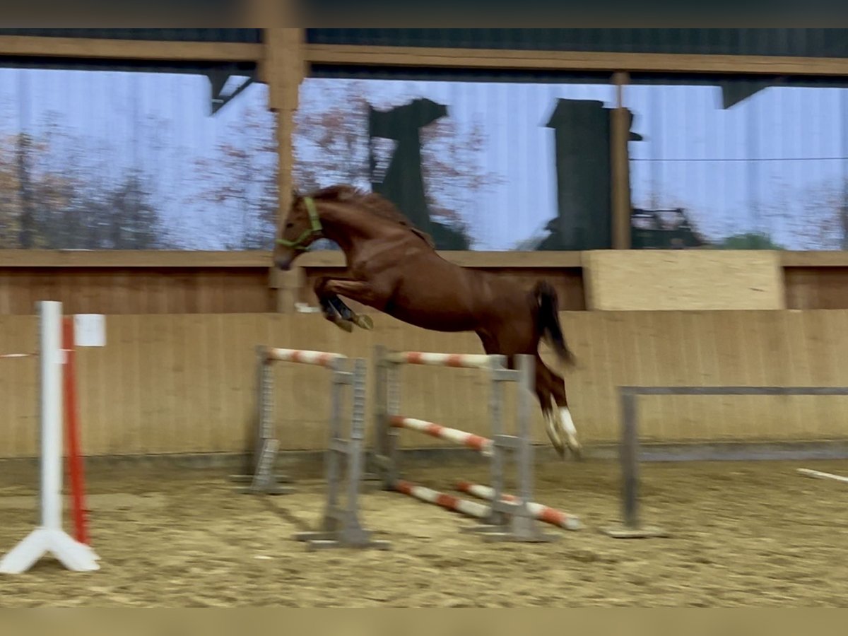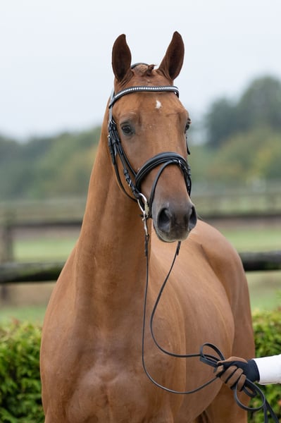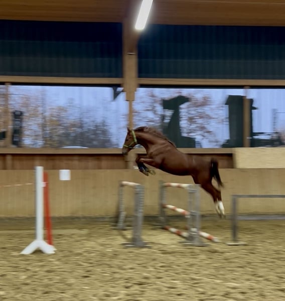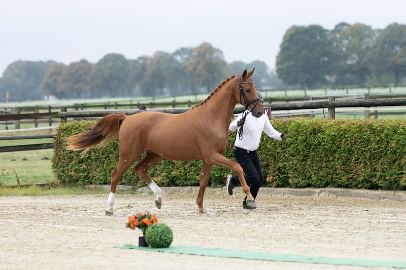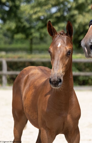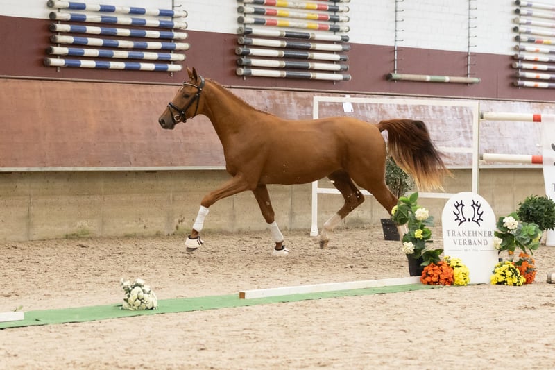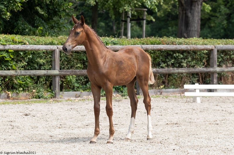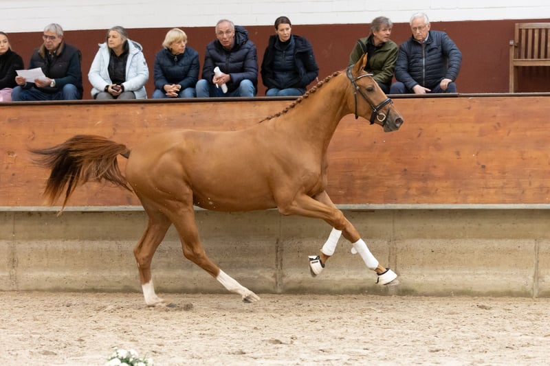 All information about him and his family can be found here: https://abraxans.com/verkaufspferde/gesellenstueck Gesellenstück is a typy, well-built colt born on February 28, 2023, from a private family breeding. This young chestnut 🦊 has excellent basic gaits and also shows great talent over fences. He descends from a very special mare line, the Glühlampe family, which has consistently produced State Premium and Elite mares. His dam, StPr and PrSt Countess Cosel, was the regional champion mare. His sister, StPr and PrSt Gold Countess, received the title of best jumping mare last year, and this year she was Reserve Champion at the regional mare show. His sire, elite stallion Imperio, was part of the Olympic squad with riding master Hubertus Schmidt. Gesellenstück has been in preparation for the licensing for about three months now. Since he is still fully developing, we decided that he should also get to know the rider in walk, trot, and canter afterward. He is currently back in the foal group to continue maturing peacefully. A castration is planned soon; however, if there is interest in promoting this valuable bloodline until the saddle licensing, please contact us as soon as possible. He has an impeccable X-ray health certificate, a very solid foundation, and has grown up healthy within a herd. Naturally, he is regularly vaccinated and dewormed. All information about him and his family can be found here: https://abraxans.com/verkaufspferde/gesellenstueck