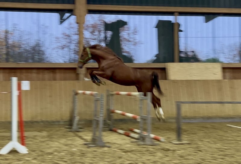 Alles zu Ihm und seiner Familie findet sich hier https://abraxans.com/verkaufspferde/gesellenstueck Gesellenstück ist ein typstarker, am 28. 02. 2023 geborener Wallach aus familiärer Privatzucht. Der junge Fuchs 🦊 hat sehr gute Grundgangarten und zeigt sich auch am Sprung mit viel Vermögen. Er entstammt einer ganz besonderen Stutenlinie, der Familie der Glühlampe, die durchweg nur Staatsprämien- und Elitestuten hervorgebracht hat. Seine Mutter StPr und PrSt Gräfin Cosel war Landessiegerstute. Seine Schwester StPr und PrSt Goldgräfin erhielt letztes Jahr den Titel beste Springstute und dieses Jahr wurde sie Reservesiegerin der Landesstutenschau. Sein Vater Elitehengst Imperio war mit Reitmeister Hubertus Schmidt im Olympiakader. Gesellenstück war jetzt ca 3 Monate zur Vorbereitung für die Körung. Da er noch voll in der Entwicklung steht, haben wir entschieden, dass er im Anschluss noch den Reiter im Schritt, Trab und Galopp kennen lernen soll und ist nun wieder in der Aufzucht, um in Ruhe weiter zu reifen. Er hat einen einwandfreien Röntgen-TÜV, ein sehr gutes Fundament und ist gesund im Herdenverband aufgewachsen. Natürlich auch regelmäßig geimpft und entwurmt. Alles zu Ihm und seiner Familie findet sich hier https://abraxans.com/verkaufspferde/gesellenstueck