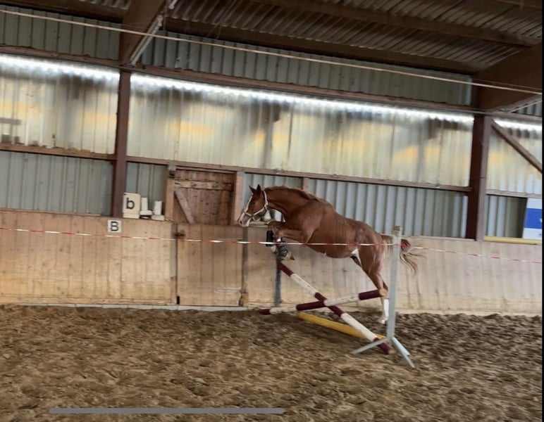 3-year-old son of the Grand Prix successful Zauberdeyk for sale. The strikingly marked, still fully developing gelding is equipped with a lot of leg and three good basic gaits. Here, the energetically pushing hind leg is particularly noteworthy. Tommy is very people-oriented and impresses in everyday life with his uncomplicated nature. He has been gently lunged and is already familiar with rider weight. A real old hand when it comes to being backed. He also does a very good job in free jumping and it brings him a lot of joy. A true all-rounder. Shoeing & loading friendly / regularly dewormed and vaccinated. Further videos of free jumping / lunging / backing can be sent upon request. A radiological TÜV is already available.