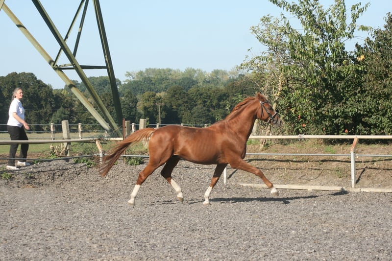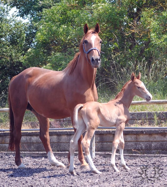 Peu de temps après, les filles de Lavinia, Lamara TN par le étalon d'élite Goldschmidt et La Bardolina TN par l'étalon d'élite Dramatiker, ont donné naissance. Leurs deux poulains de couleur alezane, tant par leur conformation que par leur couleur, leur type et leur mouvement, ne peuvent renier leur père Le Chevalier TN. L’étalon montre de plus en plus clairement sa qualité de marque à travers ses poulains d'année en année, répondant ainsi de manière fiable aux souhaits et exigences qui lui sont imposés. Lavinio TN nous a émerveillés par sa taille énorme et sa remarquable force osseuse lorsqu'il s'est enfin allongé dans la paille devant nous. Lors de sa première promenade, son galop en montée, semblable à un mouvement au ralenti, a particulièrement attiré l'attention. Ses moments de trot avec beaucoup d'action de genoux laissent déjà entrevoir ce que pourrait donner le petit 'grand' Lavinio TN. Lavinio TN, né le 1er juin 2023, par Le Chevalier TN, dans une séduisante couleur alezane foncée, promet d'être un excellent cheval de monte grâce à sa manière de se mouvoir accentuée par les genoux, son fondement robuste et sa croissance. Lors de la présentation des poulains, Lavinio a été récompensé comme un poulain trois étoiles avec la meilleure note. Selon l'évaluation de la direction d'élevage, une candidature pour étalon n'est pas à exclure. Le père est le seul fils actif en reproduction du pur-sang néo-zélandais Cavalleri xx. Sa mère, la jument primée La Bardolina TN, est issue de l'étalon d'élite Dramatiker. Cet étalon alezan, puissant en saut, est aujourd'hui basé en Chine. De plus, la lignée descendante est également remarquable en termes de performances. Karo As par Vollkorn xx, puis à travers Marduc et Mahon, des gènes arabes sont garantis pour la performance et la montabilité. Pour plus d'informations sur notre élevage, veuillez consulter notre site internet www.gestüt-terranova.de.