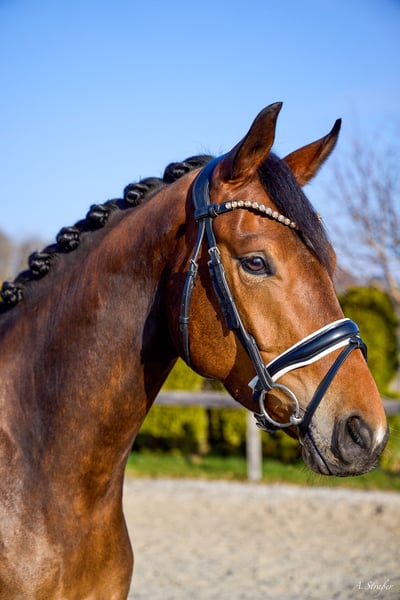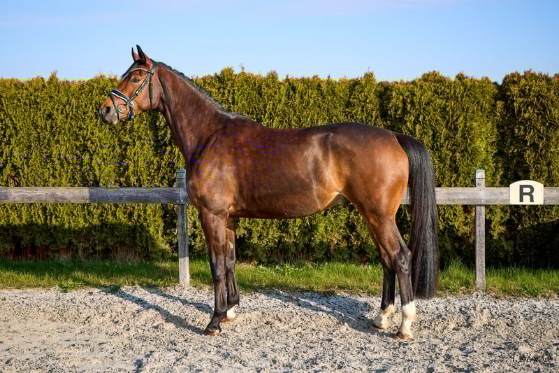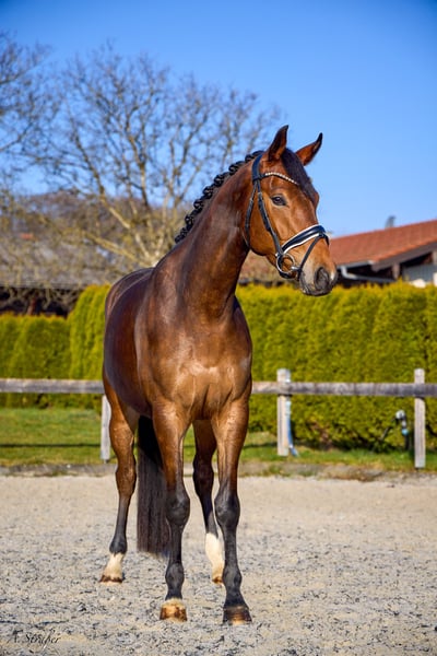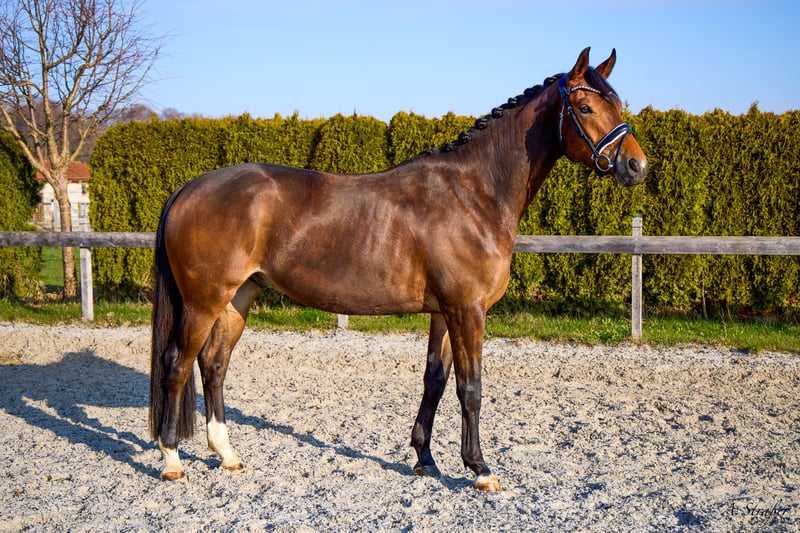 Zum Verkauf steht ein bildhübscher und sehr typvoller 4-jähriger Trakehner Wallach von Dameron x Herzensdieb mit einem aktuellem Stockmaß von ca. 1,65m. Erst vor Kurzem wurde er schonend angeritten und überzeugt bereits jetzt schon durch seine außergewöhnliche Rittigkeit und Leistungsbereitschaft. Der Wallach ist mit drei hervorragenden GGA ausgestattet und empfiehlt sich somit als ideales Dressurnachwuchs- und Ausbildungspferd! Auch im Umgang ist O’Neil unkompliziert, brav und sehr menschenbezogen. Sowohl sein einwandfreier Charakter als auch seine überragende Qualität zeichnen den Wallach aus. Ebenso schmiede- und verladefromm sowie herdenverträglich. Dennoch ist aufgrund des jungen Alters Jungpferdeerfahrung Voraussetzungen und ein reiterliches Können auf A/L Niveau wünschenswert. Eine aktuelle sehr gute AKU / Röntgenbilder liegen vor! Anfragen bei ernsthaftem Interesse bitte nur telefonisch oder per WhatsApp unter +49 176 46187186