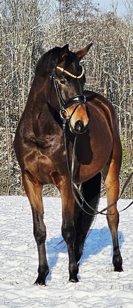 Inahi, ein sehr schicker 4 jähriger Wallach aus bestem Hause. Er stammt ab von Impetus, Sieger seiner HLP. Er brachte mehrere Siegerfohlen, gekörte Hengste und Staatsprämienstuten. Aus Inahis Mutter Instergirl entstammen ebenfalls mehrere Staatsprämienstuten, ein Hengst aus ihr gewann die Sichtung zum Bundeschampionat bei den 3 jährigen Hengsten beim Trakehner Championat. Inahi selbst überzeugt durch eine sehr hohe Rittigkeit, viel Grundqualität und Coolness. Hier geboren und aufgewachsen, immer an der Hand gewesen und liebevoll großgezogen. Mit Inahi wächst ein toller Sportpartner für die Zukunft heran. Auch seine ersten Runden im Gelände meisterte er mit Bravour. Röntgenbilder liegen bereits vor, laut Tierarzt ohne Befund.