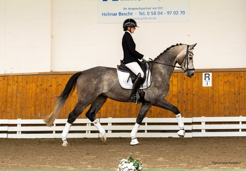 Ein Star dieser Kollektion, denn Kavos wurde mit glänzenden Talenten für eine vom Erfolg verwöhnte Karriere im Großen Viereck beschenkt und vermittelt eine Symbiose von hoher Rittigkeit, vorbildlicher Arbeitseinstellung und einem dynamischen, von Kraft und Takt getragenen Bewegungspotential. Siegreich und hochplatziert in Reitpferdeprüfungen und Dressurpferdeprüfungen Kl. A. Aus einem profilierten Leistungsstamm, dem die Verbindung der Weltklassedressurpferde Imperio und Solero TSF ein sportlich erlesenes Gesicht verleihen. Bruder des S-Dressurpferdes Killarney und eng verwandt mit dem Grand Prix-Star Kaiser Wilhelm TSF. Weitere Informationen finden Sie unter: https://bid.trakehner.auction/auctions Wiry, athletic, and committed describe the attributes of this daughter of advanced level show jumper Tempelhof, and her sport ambitions run from eventing to show jumping. Coming from a dedicated sport horse breeder and a top-class sport horse producer, she was given the right skills during her training under saddle. From a top performance dam line, where the combination of Nations Cup hero Waitaki with successful Grand Prix stallion Axis TSF and advanced level show jumper Couleur-Fürst conveys great sport horse potential. Further information can be found under: https://bid.trakehner.auction/auctions
