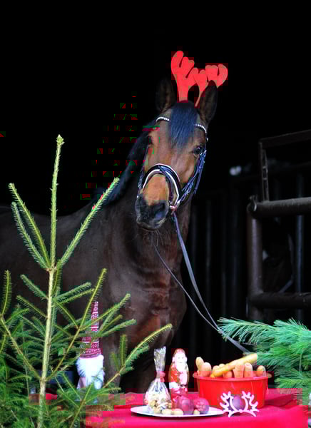 Significantly well-developed three-year-old with a great temperament and quality basic gaits. Lightly backed, he already shows a high level of rhythm under saddle and impresses with his natural rideability. When jumping, he also displays a lot of joy, ability, and style. His father, Schäplitzer, is currently successful up to Dressage Horses Class M! His three-time award-winning mother, Schwalbenlicht, produced among others the performance test winner Pr.St. Schwalbenland, the premium mare and reserve winner of the performance test Schwalbe's Beauty, the licensed stallion Special Motion, and the age-appropriate Saltazio, who has won in dressage horse tests of classes A and L. Grandmother Schwalbenspiel is the mother of the winning stallion Songline, the premium stallions Saint Cyr and Shavalou, the elite mares Schwalbenfest and Schwalbenfeder, as well as several premium mares and the current Grand Prix winner Seal. Closely related to the Grand Prix horses Schwadroneur, Showmaster, Seal, Schwalbenmelodie, Scarlet, Dark Diamant, as well as to the Bundeschampion and CCI*** series winner Songline.