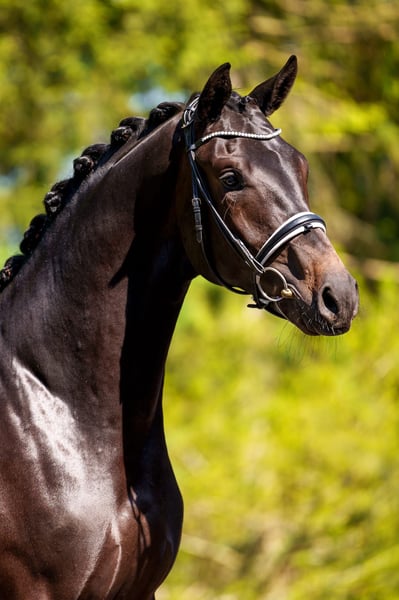 TYPICAL BRILLIANCE MEETS PERFORMANCE – APPROVED TRAKENNER STUD FARRIER (HB1) EMBODYING THE IDEAL OF TRAKENNER BREEDING ACCORDING TO THE MANUAL On behalf of the owner, we are offering a 172 cm tall, dark bay, 4-year-old approved and performance-tested (50-day / HB1) Trakehner movement artist for sale. He is sired by DAMERON out of a BUDDENBROCK x Caro As dam, and his pedigree promises great potential for Trakehner breeding and sport. He is currently in breeding use but can also be gelded upon request. Nomen est Omen – "CURRICULUM" (meaning "manual" or "textbook") lives up to his name – a Trakehner that exemplifies the attributes that have made the Trakehner breed the most noble in the world. Not only talented but also a true attraction for connoisseurs seeking nobility, strength, and intelligence in a dressage prospect. GENETICS: "CURRICULUM'S" pedigree is a statement of breeding foresight. Through his sire DAMERON and his dam’s sire & elite stallion BUDDENBROCK, he inherits top-level rideability and an interior of gold, fixed through line-breeding. With Caro As and Lothar in his lineage, he is genetically secured across generations for performance, a solid foundation, and refinement. NOBILITY & TYPE: His face, with large, intelligent eyes, and his masculine presence embody textbook Trakehner nobility and are a visual highlight in every arena. INTELLIGENCE & CHARACTER: "CURRICULUM" is a model student. With quick comprehension and unwavering loyalty, he is the ideal partner for high-level dressage. His charming character impresses with absolute caution and tenderness. He can be confidently groomed by a small child in the stable. He remains calm and shows loving attachment. ATHLETICISM: He is a textbook learner, demonstrating quick understanding, composure, willingness to perform, and excellent mechanics that will impress in the competition ring. With a solid foundation, good angulation, and an appealing side profile, he already responds well to rider aids. Since starting under professional saddle, he has been trained at Dressage Horse Level A and is ready for his first competitions. During his HLP, he performed confidently both in the arena and over jumps, adapting smoothly to unfamiliar riders. "CURRICULUM" is a top-class sport horse and a valuable breeding stallion for Trakehner breeding. The perfect answer for riders and breeders who refuse to compromise. He is the textbook embodiment of Trakehner breeding: noble, strong, and rideable. A stallion that delivers on his name. A current, comprehensive clinical and radiological examination (standard + neck + back) is available. "CURRICULUM" can also, after purchase, remain in our professional training program for further development and competition presentation.