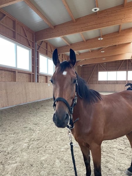 Lejano ist ein äusserst sympathischer, 5-jähriger Wallach mit einem Stockmass von ca. 160 cm, sehr gutem Charakter und viel Charme. Er zeigt sich im täglichen Umgang wie auch unter dem Sattel immer brav, zuverlässig und gutmütig. Im Gelände ist Lejano bereits alleine wie auch in der Gruppe sicher unterwegs und hat sogar schon Gruppen angeführt. Dabei bleibt er stets aufmerksam, mutig und vertrauensvoll. Im Reitunterricht läuft er sowohl in der Halle als auch auf dem Sandplatz brav und konzentriert. Er ist fein zu reiten, geht gut vorwärts und möchte seinem Reiter immer gefallen. Als Freizeitpferd ist er ein absoluter Traum – dazu zeigt er auch beim Springen grosses Potenzial und ist bereits eingesprungen. Lejano sucht nun einen feinen, geduldigen Reiter, der Freude daran hat, mit ihm gemeinsam weiterzulernen und Routinen aufzubauen. Mit der richtigen Bezugsperson wird er garantiert ein Partner fürs Leben.