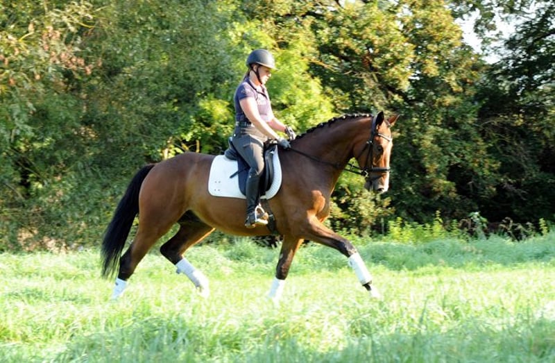 Der großrahmige Tom Taylor ist ein ganz bedeutend aufgemachtes Pferd mit erstklassigem Interieur und drei richtig guten Grundgangarten. Der Schritt ist imposant. Im Trab und Galopp sehr taktsicher, schwung- und kraftvoll! Aktuell : siegreich in Dressurpferdeprüfung - erfolgreich in Reitpferdeprüfungen! Er ist altersgemäß auf dem Weg in Richtung Kl. L. Wir wünschen uns für ihn einen gefühlvollen Reiter, der ihn dressurmäßig weiter fördert. Er ist ein Kandidat für das große Viereck! Tom Taylor liebt auch Ausritte und hat auch viel Freude am Freispringen! Er ist sehr Gruppen verträglich und insgesamt sehr freundlich zu Mensch und Pferd. Vater Zauberdeyk ist aktuell bis Grand Prix erfolgreich. Seine Mutter gewann ihre Stutenleistungsprüfung und brachte mit der 4jährigen Taluna eine Siegerin in Reitpferdeprüfung sowie Dressurpferde A erfolgreiche Tochter. Aus naher Verwandtschaft der M/S erfolgreichen Dressurpferde Thimur (Grand Prix), Taylord, Tausendsassa, Trocadero, Trezèguét, Tolkien ...