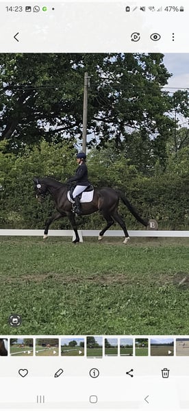 Un Amigo is the perfect and uncomplicated partner for the ambitious junior or small adult. He is only sold to the best hands, has always been healthy, and is absolutely easy to handle. Successful in dressage horse class L and L dressage, eventing class L, and show jumping L, he has been placed multiple times. He is also familiar with hunting with hounds. He is well-behaved for the farrier and loading. He occasionally weaves at the tie, but otherwise does not have any issues. He has always been healthy. Ideal for children as he is very easy to ride. A true ribbon collector, he is compatible with other horses. He is only available to proven good homes. Videos can be sent upon request. Very good current X-rays are available. Due to riding tourism, we charge 20 euros for trial rides, which will be deducted from the purchase price.