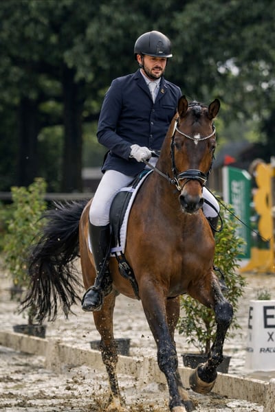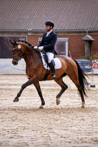 Bestens gereift, im jugendlichen Alter behutsam an die Aufgaben der weiteren Ausbildung herangeführt, präsentiert sich nun mit Lindbergh ein volljähriger und umgehend einsatzbereiter Dressuraspirant mit hohem Anspruch und ganz vielen Perspektiven für eine Erfolg versprechende Zukunft auf dem Großen Viereck der Dressur. Nach ersten Platzierungen in Dressurpferdeprüfungen der Klasse L, befindet er sich nun mit seinem gefühlvollen, die klassischen Grundsätze der Ausbildung beherzigenden Ausbilder und Reiter auf sicherem Wege nach M. Im Wesen vorbildlich abgeklärt, unermüdlich und immer bereit hinsichtlich seiner Leistungsbereitschaft und Arbeitsfreude. Auch in dieser Hinsicht ein richtiger Botschafter seiner erlesenen Dressurabstammung , in der sich der in Weltmeisterkonkurrenzen hocherfolgreiche Imperio mit dem Rittigkeitsvererber Rheinklang verbinden; dazu treten in weiterer Generationenfolge der S-Dressurhengst Ivernel und mit Caprimond eine richtige Ikone der Dressurpferdezucht. Die Mutter ist Mitglied der seinerzeitigen Bundessiegerfamilie 2014; ganz eng verwandt mit der Jahressiegerstute Lilli Marleen und der Nachwuchsspitze Le Lys (Trakehner Hengstmarkt 2025).