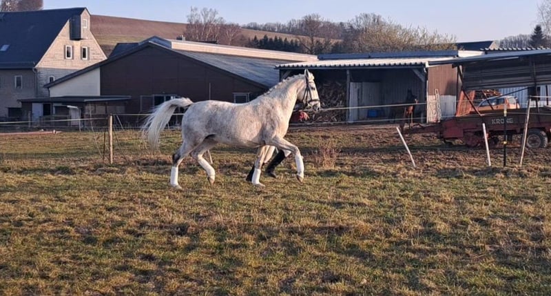 Elegante Trakehner-Stute, geboren 2015, mit einem Stockmaß von 163 cm. Diese talentierte Springpferd überzeugt durch ihre gute Grundgangarten, ihre Elastizität und ihre klare Springanlage. Sie ist gut ausgebildet, und zeigt eine vielversprechende Springqualität.Jedoch wurde sie im letzten Jahr nicht weiter gefördert. Sie ist sowohl für den ambitionierten Freizeitreiter als auch für den Turnierreiter geeignet oder einfach als liebe Zuchtstute. Die Stute verfügt über eine angenehme Charaktereigenschaft und ist im Umgang äußerst liebenswert. Sie hat bereits 2 Hengstfohlen gebracht. Und ist auch sehr interessant durch das Pedigre für die Zucht. Sie ist Ein echtes Springtalent, das noch viel Potenzial für die nächsten Schritte in der Turniersportkarriere bietet. Wichtig dies ist kein Zwangverkauf sondern eine bestandsverkleinerung durch einen Krankheitsfall in der Familie Sie sucht nun ein liebevolles Zuhause als Sportpferd oder Zuchtstute. Händler sind vom Kauf ausgeschlossen Bei Interesse gerne melden