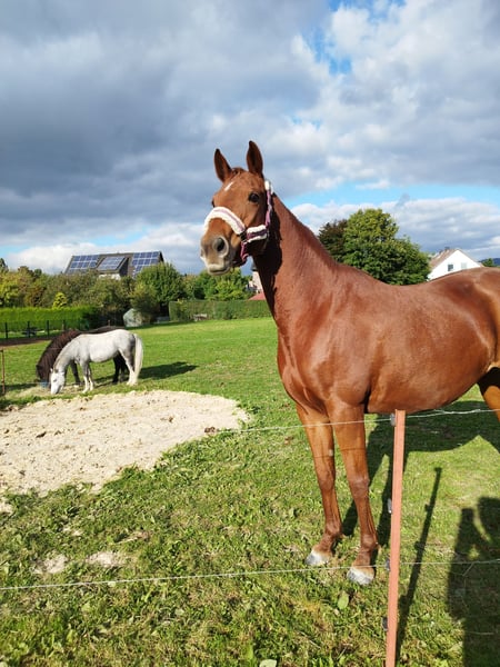 Schweren Herzens muss ich mich von meiner Leonie trennen. Sie geht einfach Grade unter und das hat sie nicht verdient. Leonie würde 100% bei mir ausgebildet, somit könnte ich jeden Schritt verfolgen. Sie geht aktuell überwiegend ins Gelände (stand jetzt leider 3 Monate), sie steht aktuell im Offenstall ohne Reitplatz, kennt aber auch Box, Halle, Reitplatz, Führanlage etc. Am Anfang eher skeptisch und zurückhaltend, aber wenn sie warm geworden ist, wird man sie nicht mehr los! Ist Grade vom Boden sehr fein, testet aber auch gerne Mal. Sie braucht Sicherheit und Stärke von ihrem Menschen. Eigentlich wollte ich sie fürs Turnier fertig machen und gemeinsam mit ihr wieder vom Freizeitreiter zum Hobbysportler werden. Leo hat sehr viel Zubehör, welches auch gerne ohne Aufpreis dazugegeben wird! Gerne einfach melden, es gibt immer so viele Sachen zu sagen. Videos auf Wunsch per WhatsApp.