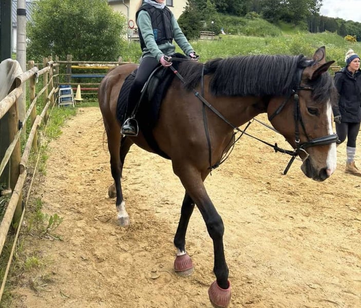 Meine 19-jährige, reinrassige Trakehner Stute mit vollem Papier sucht ein liebevolles Zuhause bei einer festen Bezugsperson. Sie ist ein sensibles, verschmustes und zuverlässiges Pferd. Mit einem Stockmaß von 1,65 m ist sie ein elegantes Freizeitpferd, das sich sowohl für Anfänger als auch für erfahrene Reiter eignet, die sich eine treue Partnerin wünschen. Im Umgang ist sie feinfühlig, sie liebt Zuwendung und gemeinsame Zeit. Am wohlsten fühlt sie sich bei einer festen Bezugsperson oder maximal zwei vertrauten Menschen – für den Schulbetrieb oder häufig wechselnde Reiter ist sie daher nicht geeignet. Aus diesem Grund wird sie deshalb abgegeben. Ideal ist sie für jemanden, der entspannt mit ihr ausreiten, Bodenarbeit machen und einfach schöne Momente mit ihr verbringen möchte. Sie kennt Traktor, Hunde und Kinder und zeigt sich dabei stets gelassen. Sie wird zurzeit von einer 14 jährigen im Gelände als auf dem Platz alleine geritten. Ausritte in einer Gruppe ist auch kein Problem. Gesundheitlich ist sie ihrem Alter entsprechend fit. Keine Hufrehe, Ekzem oder Asthma. Sie wird regelmäßig geimpft, entwurmt und erhält jährlich eine Zahnkontrolle sowie physiotherapeutische Betreuung. Schmied und Verladen sind für sie problemlos, aktuell ist sie komplett beschlagen. Sie lebt derzeit im Offenstall in einer gemischten Herde und ist an diese Haltungsform bestens angepasst. Sie ist eher rangniedrig. Sie tut weder nach anderen beißen noch treten. Auf Wunsch können Zubehör wie Sattel, Trense und eine Regendecke mit übernommen werden. Bei Fragen gerne melden