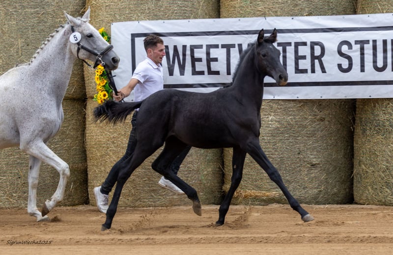 Bella Athletica will be offered at the Sweetwater Stud Autumn Sale 2025. The auction runs from November 12th to November 19th, 2025. BidUp starts at 7:00 PM CET. You can register and participate in the bidding at https://auction.sweetwater-stud.com/auctions Dalton Vra AA has truly made a mark with his first foal crop! He improved every individual evaluation criterion and increased the overall score by a full 3 points! An athletic, performance-tested Anglo-Arabian stallion, he has achieved success in dressage and show jumping up to M level in Denmark. His sire, Dalton Vra AA, is by the Shagya-Arabian Dartan, a lineage tracing back to the famous Arabian stallion DAHOMAN, born in 1846. The Dahoman line is known for its strong build, excellent bone quality, toughness, and stamina. His dam, Donna Vra AA, is a daughter of the highly successful show jumper DON-CASTER AA by DORPAS AA, who competed internationally up to S** level with Dirk Schröder (including 1st place at CSI Neustadt/Dosse). DON-CASTER AA is also the sire of JUMEAUX RH AA (show jumping in the US up to M2*) and a maternal half-brother to BONAPARTE N AA and NABUCCO AA. His granddam, Piroutte Vra AA, descends from PRIMUS AA, a son of the renowned MATCHO AA (NK-value €578,029), whose offspring have achieved considerable success in dressage. He sired 37 S-dressage horses, 8 S-show jumping horses, 1 S-driving horse, and 7 S-horse-drawn vehicles, primarily Hannoverians. Prized mare foal Bella Athletica (54.5 points) is a movement-rich filly from a highly athletic, fertile dam line. She is a guarantee of performance and is of high breeding interest due to her pedigree, which can contribute to maintaining genetic diversity within the increasingly narrow Trakehner population. Her dam, Bella Luna, is a harmonious half-bred mare and the only registered daughter of Wörtersee xx—brother of Well Done xx. With a GAG of 91.5 kg on the racetrack, he has proven himself with over 43 starts and 12 wins, earning a total prize money of €85,000. The performance-tested granddam, Bella Chocolotta v. Suchard (SLP final score 7.92), is half-sister to four licensed stallions in various breeding associations. Among them is the half-bred Pampéro v. Panchero II AA, an impressive winner of the 70-day test in Marbach, and B.B. King v. Best Before Midnight, licensed with ZSAA, who completed a very good 30-day test and has been successful in eventing competitions. Her half-sister, Belle Petitesse, is registered in the ZSAA performance mare book. Bella Chocolotta produced, among others, the premium mare Bellezigane (NMS 21/51) from the first foal crop of the 2020 World Champion of 7-year-old eventing horses, Elite candidate Sweetwaters Ziethen TSF, and her full sister Bellevue, also a premium candidate. Suchard, the sire of the granddam and himself successful up to S level in show jumping, is the sire of licensed stallions Ballisto Z, Budweisser Classic, Becket, and full brothers Lossow and Lessen (GB). His progeny include numerous successful sport horses in Trakehner, Oldenburg, and Rhenish breeding for eventing and show jumping. Among his most renowned offspring are the sport horses Ballisto Z, Budweiser Classic, and Finch Hatton TSF. Suchard is also the sire of E.St. Blanchette, dam of Blancor. Regarding Bella Marjell in the maternal line, also listed in the ZSAA performance mare book (Section D 10/10), Bella Athletica carries the blood of the successful show jumper Machandel, who later was stationed in Poland. The line includes sires Bartholdy, Seeadler v. Habicht, and the tough full-blood Nemrod xx, emphasizing performance based on a Polish mare line. The fourth dam, Bella Babette v. Bartholdy, is a full sister of the versatile eventer Ben Bartholdy, who competed successfully up to M level. Broodmare line: O468A1 Barkarola https://auction.sweetwater-stud.com/auctions