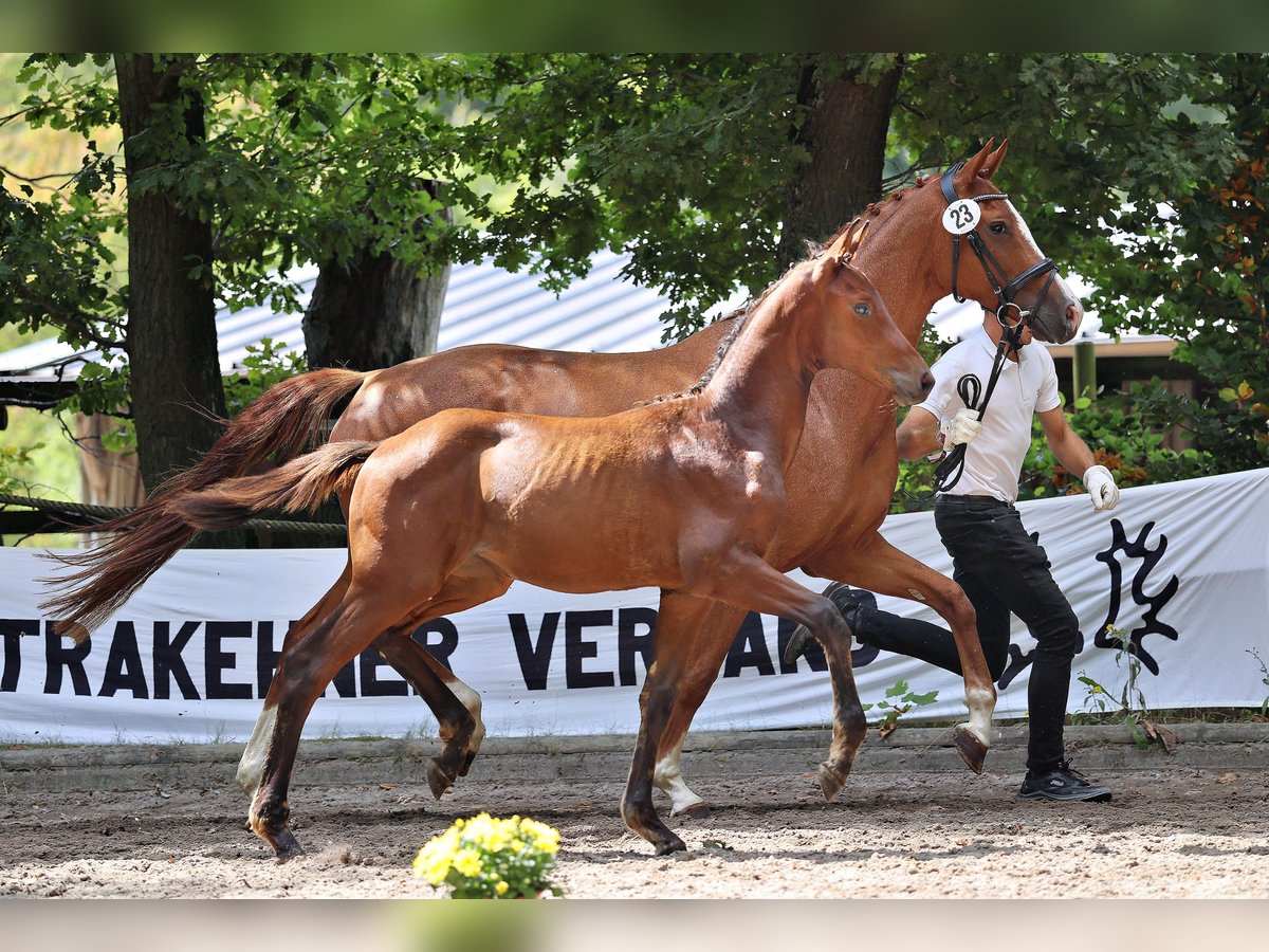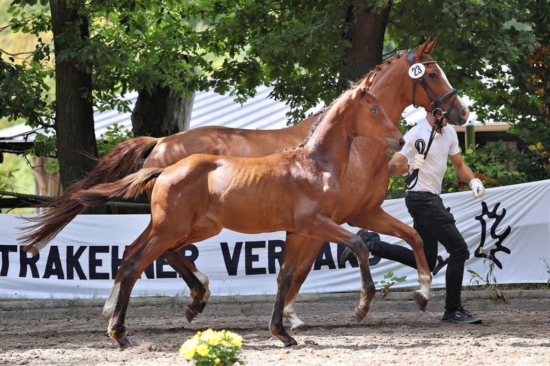 The highly demanding Zauberkönig, bred under dressage and performance aspects, can be represented by an ambassador with style and presence. His daughter impresses with her distinctly feminine nobility, characterized by significant presence and harmony in her conformation. She stands out immediately, showcasing rhythm and space in her naturally uphill presence. Additionally, she captivates with her friendly disposition, always oriented towards humans and ready to fulfill all required tasks. Her highly decorated mother excelled in the top group of the Central Registration and completed an outstanding performance test. Her father, Banderas, and grandfather, Mayong, are both successful sport horse heroes in advanced dressage competitions, known for their exemplary attitude and high-quality interior values, making them clear favorites. On the maternal side, she comes from a high-class sporting lineage; closely related is the Grand Prix champion Stettin.