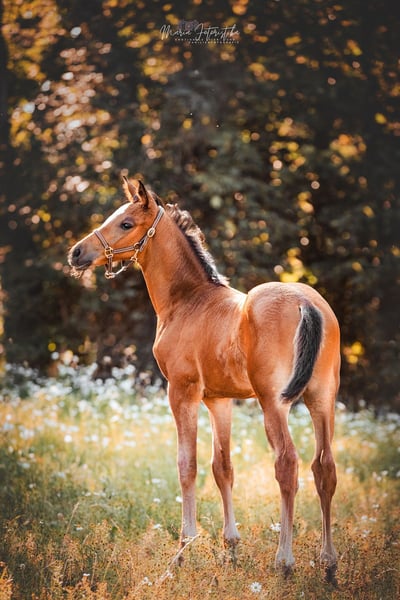 Auf diesem Weg sucht Aurinia ihren neuen Lieblingsmenschen. Sie ist gut erzogen, sozialisiert, verschmust, neugierig, unerschrocken und neugierig, ist schmiede- und verladesicher, kennt Bauernhoftiere und -maschinen. Zur Fohlenschau wurde sie hoch bewertet und zum Championat hoch prämiert. Durch ihre überdurchschnittlichen Bewegungen sowie einem Mutterstamm, aus dem viele sehr gute Springpferde hervorgegangen sind, ist sie für alle Sparten der Reiterei sehr interessant. Immer PLATZ VOR PREIS! "In einem vorzüglichen Haltungszustand und in tollem, modernem Seitenbild präsentiert sich die ansprechende Aurinia. Im Wonnemonat Mai geboren, weiß Sie durch beinahe tadellosen Typ und Körper sowie Fundament zu überzeugen. Abgerundet wird das Auftreten dieses formidablen Fohlens durch überzeugende Grundgangarten, was sie letztendlich zu einem hoch bewerteten Championatsfohlen gemacht hat. Der Vater Saint Cyr zählt zu den letzten Nachkommen der Trakehner Legende Kostolany, der wiederum dieser Rasse seinen absoluten Leistungsstempel aufgedrückt hat. Saint Cyr konnte bereits eine Reihe von Prämienstuten stellen. Die Trakehner Vorzeige-Zuchtstätten Hämelschenburg und die sächsische Gestütsverwaltung aus Graditz, werden hier vortrefflich miteinander kombiniert, über den hervorragenden Alraune-Stamm aus Trakehnen mit seinen Töchtern den Elitestuten Almut, Altea und Altena. Vater Berlusconi rundet das auf allen Ebenen vielseitige und sportliche Pedigree ab." (Kommentar des Trakehner Verbandes anläßlich des Fohlenchampionates)