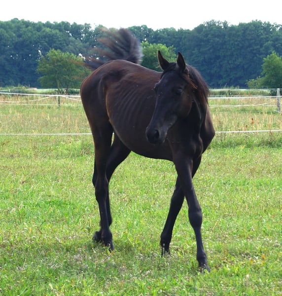 Diese hübsche Dame ist im Mai 2023 geboren und eine aufgeschlossene und neugierige Stute. Hally Gally ist korrekt und gesund. Sie wächst im Herdenverband auf. Schmiedefromm ist sie auch bereits