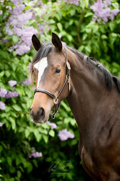 Born late in the breeding year 2023, the sporty, athletic Kirschblüte is now growing into a real young hopeful with versatile sporting demands and for promising breeding tasks. Kirschblüte represents the first crop of her sire Lilienthal, who is aiming for a promising sporting future in the bush. As one of the last and very few sons of the S-course successful Lücke and grandson of the celebrated Friedensfürst on the Grand Prix stage, Lilienthal is called upon to preserve and strengthen the dying paternal line of the legendary Tempelhüter. Kirschblüte is the second daughter of the former Champion Mare of the Year Kosima and is therefore the sister of the highly decorated premium mare Korsette, who also passed a first-class performance test. Kosima represents her maternal house of the Dohna K-family from the breeding heritage of the unforgotten Alexandra Countess zu Dohna in the best sense of the word. Kirschblüte's granddam Kontadina is a sister of no less than four premium mares and also a sister of the celebrated champion stallion Kissinger. She moves dynamically, with pronounced freedom of shoulder, diligence, energy and rhythm. In addition, her alert, intelligent and human-oriented nature is captivating. It goes without saying that she is well bred and in her usual herd.