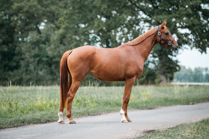 Isabella is a stunning, lively, and characterful young mare. Descended from the premium stallion Banderas, who consistently impresses with high-quality offspring, and out of a Brioni mare (Brioni was the winner of the Nurmi Versatility Testing and placed in show jumping, dressage, and eventing competitions), her Arabian influence is immediately noticeable. She features an elegant head with large, friendly eyes, dry and clear joints, sufficiently large and strong hooves, and a small yet compact body. In her temperament, she is very human-oriented and, although sometimes a bit stubborn, she is always easy to handle and work with. She was backed this spring and shows potential across all disciplines. Due to her calmness, we see her excelling in eventing. Recently, she made a good impression at the eventing screening organized by the Trakehner Verband. Given her age and training level, Isabella is not suitable for insecure riders, beginners, or re-entrants. She is in excellent health, fully vaccinated, regularly shod, and easy to handle. She loads into the trailer like a pro! X-rays can be taken upon request at the buyer's expense. For more information, please contact me or her trainer, Laura Schmager.