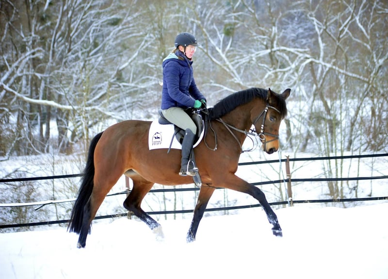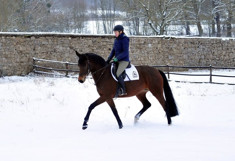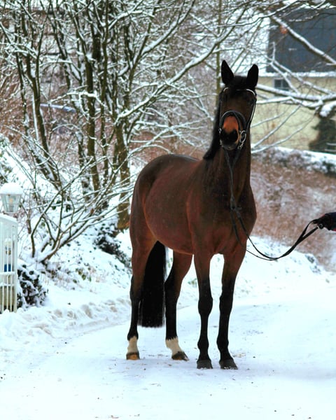 Unsere 4jährige Schwalbe's Primavera ist eine Stute mit viel Energie und Bewegungsfreude, drei guten Grundgangarten, einem ausgezeichneten Interieur und guter Springveranlagung. Sie hat im Herbst 2025 erfolgreich die Stutenleistungsprüfung (Gesamtnote 7,68) abgelegt. Aus naher mütterlicher Verwandtschaft stammen mehrere S-erfolgreiche Dressur u. Vielseitigkeitspferde sowie u.a. die gekörten Hengste Songline, Saint Cyr, Showmaster, Sans Souci, Stradivari, Santiago, Schwadroneur u.v.a. Ihr Vater Schäplitzer ist inzwischen im Dressursport der Kl. M hoch erfolgreich. GV High Motion ist bis Dr. Kl. S*** siegreich und Imperio war Olympia Versatzpferd in Rio.