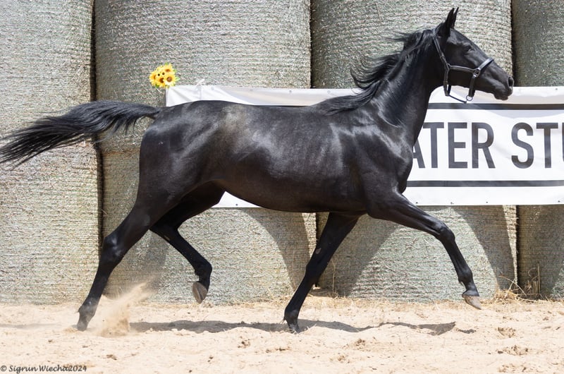 Starsandstripes ist eine bewegungsstarke Tochter des Geländepferdechampions 2022 der fünfjährigen Vielseitigkeitspferde BLANCOR v. Adorator ist eines der wenigen Fohlen des sympathischen Schimmels, der über ein exzellentes Leistungspedigree verfügt und einen entsprechenden Karrierestart unter Jens Hoffrogge, bereits auf internationaler Bühne, nachweisen kann. BLANCOR stammt aus der Zucht von Dr. Ursula Mittermayer. Mit STARSANDSTRIPES, geboren am 25.05.2022, gibt die einzige bisher eingetragene Stubbendorff-Tochter SAPHIRA ihr züchterisches Debüt in gewünschter Machart. Sie entstammt, wie ihr Vater, der berühmten und bewährten Familie der Schwindlerin. Unverkennbar die Linienzucht auf die Stammstute Schwindlerin nach bewährtem Rezept von Peter Elxnat, dem auch die Besitzerin von Stubbendorff und Züchterin dieser Stute treu geblieben ist. Saphira war bis zu ihrem Zuchtdebüt im Reitsport eingesetzt. Ein Blick ins Pedigree dieses Stutfohlens lässt keine Wünsche offen. Blancor’s Mutter E.St. Blanchette v. Suchard ist Vollschwester zu den Hengsten Budweiser Classic, Bantry und Balisto Z, der international auf höchsten Niveau erfolgreich ist. Sie ist auch Mutter der erfolgreichen Vielseitigkeitspferde Beauvois v. All Inclusive (CCI3*-L), den Vollgeschwistern Bisazza und Basmati (Andrew Hoy) v. E.H. Grafenstolz (beide bis CCI3* erfolgreich) der bis Springen der Kl. S (1,40 m) Baloutte (OLS) v. Balou du Rouet und dem erfolgreichen Dressurpferd Balsamico v. Hertug (CDI5* intl.). Blancor's Halbschwester Berlinale v. Heuberger ist sowohl Mutter der Auktionsstute Biennale v. High Motion (Kat. Nr. 41, NMS 2022), wie auch dem am 05.02.23 in Münster-Handorf gekörten Berlioz v. Zauberdeyk. Der in schweren Springen erfolgreiche Muttervater STUBBENDORFF ist ein Sohn des ARGONAUT, der selbst Erfolge in der schweren Klasse nachweisen kann. Argonauts Vater ORDENSGLANZ lieferte viele gute Sportpferde, vor allem in der hannoverschen Zucht. 142 Nachkommen waren im Turniersport erfolgreich und gewannen dabei insgesamt 48.856 €. Argonauts Mutter, Pr.St. ARWETTA v. Habicht, u.a. zweimalige Siegerstute im Schleswig-Holsteiner Landeschampionat. ist zudem eingetragen im FN-Leistungsstutbuch, Abteilungen B und D. Sie lieferte unter anderem vier gekörte Söhne, neben den bereits genannten, auch ARSENAL und den in Südafrika wirkenden ARON, Vater von CAANITZ. Stubbendorff’s Mutter St.Pr.u.E.St. AUXINNE S zählt zu den prominentesten Vertreterinnen der berühmten Schwindlerin-Familie von Peter Elxnat. Diese Stutendynastie weist eine Vielzahl von hochverdienten Elitestuten auf: Schwindlerin, Stelldichein und Großmutter Sommernacht, auf die auch Ingrid Klimkes SEACOOKIE TSF zurück geht, erhielten den Elitetitel. Ihr Pedigree weist gleich mehrfache Linienzucht auf. Sie brachte zehn Fohlen in 12 Zuchtjahren, darunter drei gekörte Söhne. Neben Stubbendorff, ist sie Mutter von SPIRDING v. Katamaran xx und den in der Oldenburger Zucht gekörten SHAMANE v. Luzifer und die Töchter Pr.St. SAALAU II und Auxinnetochter S, Stammstute im Gestüt Graditz. Die Großmutter des Fohlens, SCHICKSE, ist eine Tochter des Luzifer. Der zahlreiche Nachkommen im Dressur- und Springsport hatte. Wie gut dieser Leistungsgarant zu dieser Stutenfamilie passt, zeigen zahlreiche erfolgreiche Familienmitglieder, die in gleicher Weise gezogen sind. Mit diesem interessanten und sportlich gezogenen Stutfohlen sichern Sie sich wertvolle Leistungsgene. Warum "Preis auf Anfrage"? Scheuen Sie sich nicht uns wegen unserer Preisvorstellung unverbindlich zu kontaktieren. Wir ziehen die persönliche Kontaktaufnahme vor und verzichten deshalb bewusst auf die Angabe einer Preiskategorie, da uns Platz und Perspektiven für unsere Pferde wichtig sind. Transport kann organisiert werden. Unsere Pferde shutteln oft zwischen Bulgarien und Deutschland, Schweiz oder Österreich. Daher sollte dieser Punkt das kleinste Hindernis darstellen. Wir verkauften bisher Pferde nach DE, CH, AT und Australien. Kundenzufriedenheit in diesem Punkt ist uns ebenfalls wichtig. Kontaktieren Sie uns gerne bei Interesse an weiteren Informationen, Videos und Fotos. Mobil +359 886 281 305 (auch WhatsApp) oder E-Mail: j_muehlethaler@yahoo.com Weitere Informationen auf unserer Webseite: https://www.sweetwater-stud.com