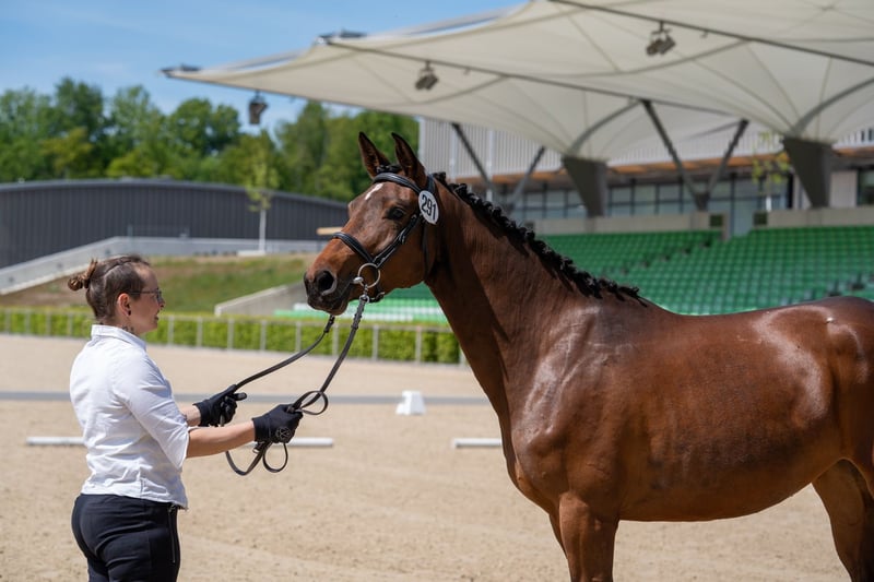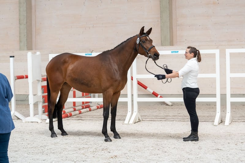 Valyria stands out as one of the very few daughters of the excitingly bred Karakallis: As the son of the Grand Prix winner High Motion and a member of one of the best sport horse lines in the population (closely related to the stallion champion Kap Verde, as well as the Grand Prix and S-level dressage horses Kasimir TSF, Kiriakos TSF, Konradi TSF, etc.), he points to a performance genetics that serves as a role model. Valyria captivates with her high nobility, elegance, and truly noble attributes. Particularly well-proportioned and harmonious in her body, she moves with effortless grace and always in balance. From a highly proven maternal line that combines athleticism with great tradition and features renowned performance producers such as Handryk and Inster Graditz in the first generations. Registered in the main studbook and currently in foal to Karlsson II - a pairing with great sporting prospects.