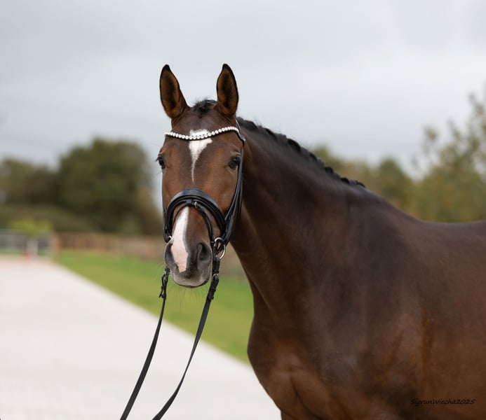 A striking appearance bearing the ‘Integer’ brand and thus an impressive mover. Her excellent rideability, exemplary demeanor in all situations, and dynamic movement make her ideally suited for a promising dressage career. Additionally, she is a beautiful mare with a lovable personality. She hails from a prestigious breeding program that includes top sport horses such as the S-level dressage horse Hierro, the S-level show jumpers Heimwind 2 (by Donauwind), Heimwind (by Cesar), Heimherr, Haigar, Phantom TSF, and the versatile eventing star Herakles TSF. Further information can be found at: https://bid.trakehner.auction/auctions