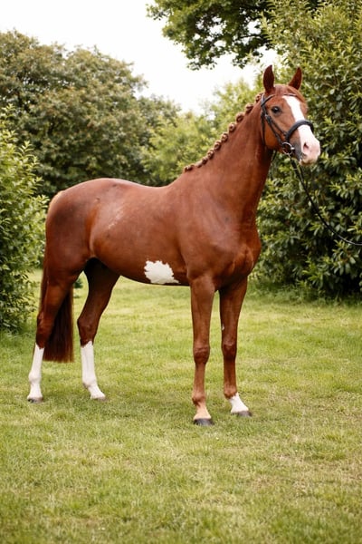 L'aspetto particolare di questa cavalla si combina con un pedigree sportivo comprovato, che offre una varietà di caratteristiche che lasciano poche desideri. Il stallone di sangue Westo-S, suo padre, è un figlio di Gvazdikas xx, già noto per aver prodotto cavalli da salto e multipli campioni di concorsi di dressage a livello internazionale. Il nonno Favoritas xx è una leggenda nel salto ostacoli e tra i purosangue più vincenti in questa disciplina. La carriera di Favoritas xx, ricca di successi fino alle Coppe del Mondo di salto, testimonia il suo pedigree di successo. Anche la linea materna può vantare un eccellente sangue da prestazione lituano. Il nonno materno Vikis e il bisnonno Holaris si sono distinti da molti anni nel salto ostacoli di alto livello grazie a numerosi discendenti. Chi cerca un’eredità di salto affidabile oltre il consueto mainstream troverà nella cavalla "Verona" un esempio perfetto.