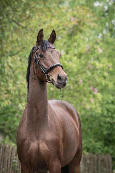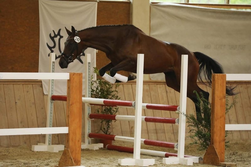 Zum Verkauf steht eine wunderschöne, braune Trakehner Stute, geboren im Jahr 2020. Im mittleren Rahmen stehend, deckt sie mit ihren 164 cm auch größere Reiter problemlos ab. "Orea de Cyr" wurde schonend angeritten und dann vielseitig ausgebildet. Sie kennt erste Geländehindernisse, sowie die Arbeit im Dressurviereck und die ersten Sprünge unterm Reiter. Diese talentierte Stute eignet sich hervorragend für die Vielseitigkeit und zeigt großes Potenzial in diesem Bereich. Im Umgang ist sie unkompliziert, vorbildlich beim Verladen und frei von Unarten. Koppelgang in kleinen Gruppen gewöhnt. Ebenso wurde sie heuer ins Stutbuch 1 des Trakehnerverbandes aufgenommen. Sie überzeugte mit 3 soliden Grundgangarten und mit viel Übersicht beim Freispringen. Besonders ihr rassetypischer Ausdruck macht sie somit auch für die Zucht interessant. Ganz aktuell besitzt die Stute eine große AKU, die sie ohne jeglichen Einschränkungen ausweist. Wir wünschen uns für diese Stute fördernde Hände, sei es im Vielseitigkeitsport oder als verlässlicher Freizeitpartner. Bei Interesse oder weiteren Fragen freue ich mich über Ihre Nachricht!