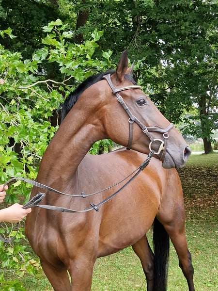 Schon bei der Anpaarung dieses leistungsgeprüften Pedigrees hatte ich mir genau dieses Zuchtprodukt erhofft. Ein Pferd, stets gesund, einsatzbereit, mit herrlicher Rrittigkeit ausgestattet, dabei immer ehrlich im Gelände mit besten Erholungswerten. Alles nicht ganz unbegründet, denn in unserer Top Gracy vereinen sich diverse langlebige Leistungsträger wie z.B. Well Done (vom Gestüt Etzean gezogen, lief er 7 Jahre erfolgreich auf der Rennbahn, um dann noch erfolgreich in den Vielseitigkeitssport zu wechseln bis er dann weit über 20 Jahre leider verstarb), der langlebige Elitehengst Manrico (unser "König von Majenfelde", den ich selbst erfolgreich bis Intermediaire in der Dressur geniessen durfte und jahrelang einer der besten Doppelvererber der Trakehner Zucht zur Verfügung stand), El Greco TSF (der echte Sporthengst lief unter Alexa Bendfeldt erfolgreich in Dressur- , Spring- und Vielseitigkeitsüprüfungen bis zu Klasse S), Fontainebleau (jedem in der Militaryszene ein Begriff) und nicht zu vergessen, meine mit 24 Jahren eingeschlafene Hot Chocolate, die ich erfolgreich bis zur Dressur Klasse M/A, L- Springen ausgebildet habe, die 6- spännig vor der Kutsche vorne links im Strasenverkehr lief, Pferdefussball in Perfektion spielte, in Treia auf dem Pferdemarkt als Ungarische Post mit meiner damaligen Auszubildenden über Feuer sprang, zeitgleich 2 fremde Waisenfohlen adoptierte usw. Top Gracy wurde in unserem Gestüt geboren, sorgsam auf grosszügigen Weiden herdentauglich aufgezogen, angeritten und weiter ausgebildet. Sie absolvierte 4- jährig ihre Stutenleistungsprüfung mit folgenden Noten: Alle Grundgangarten (Schritt, Trab, Galopp) 8,0 Rittigkeit bei den Richtern und beim Fremdreiter 8,5 Freispringen 8,5 Im anschliessenden Geländeteil erhielt Top Gracy für die Leistungsbreitschaft eine 8,0. Das beigefügte Geländevideo zeigt die ehrliche, damals noch sehr junge Stute, die immer auf die andere Seite will und vormittags schon ihre Freispring-, Grundgangarten- und Rittigkeitsprüfung erfolgreich absolviert hat. Inzwischen ist Top Gracy wesentlich weiter geschult, kennt Gräben, Treppen, Wasserein- und ausspünge usw., doch dieser Winter lässt leider keine aktuellen Videos zu. Eine geschickte Stute, die bis heute keine gesundheitlichen Probleme hatte. Für den Trakehner Verband ohne Einschränkungen eintragungsfähig. Schon in Ostpreußen galt die Anpaarung von Halbblütern als Erfolgsrezept! Ihre väterliche Halbschwester startet 2024 erfolgreich auf dem Bundeschampionat der Vielseitigkeitspferde. Ihre mütterliche Halbschwester ist im Vielseitigkeitssport erfolgreich unterwegs. Aktuelle Videos der Dressurarbeit oder Bodenarbeit gerne per Whatsapp unter 0172 35 464 36 anfragen. Wir freuen uns auf Sie!