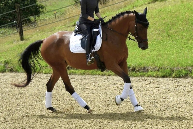 Donatella è una cavalla trakehner di colore baio, nata nel 2020 e alta attualmente circa 165 cm, figlia di Burma Gold xx x Cavallieri xx x Hohenstein. La sua ascendenza e tutti i fratelli di questa linea suggeriscono una versatilità di utilizzo. Attualmente, Donatella è in fase di addestramento delicato e versatile. Da sottolineare è la sua disponibilità al lavoro e la predisposizione al salto. Salta già un completo percorso A, dimostrando coraggio, cautela e visione, e possiede potenziale per compiti di livello superiore. Ha anche già accumulato le prime esperienze nell'addestramento al cross e si raccomanda per il completo con ulteriore formazione. Anche nel lavoro di dressage, Donatella offre grande soddisfazione al suo cavaliere. È sempre motivata, desidera fare tutto nel modo giusto e impara rapidamente. Tutte le lezioni del dressage per cavalli di livello L non le sono estranee. Non ha mai scalciato sotto il cavaliere e trasmette sempre una sensazione di sicurezza durante la monta. Donatella ama l'attenzione e colpisce per il suo carattere amichevole, curioso e intrepido. Per rilassarsi, esce regolarmente da sola o in gruppo al passo, trotto e galoppo. La cavalla trakehner è abituata a trascorrere la giornata in gruppo nel paddock o al pascolo. Proviene direttamente dall'allevatore, è vaccinata, sverminata e viene regolarmente seguita dal maniscalco. Ulteriori informazioni su richiesta, posizione 42579.