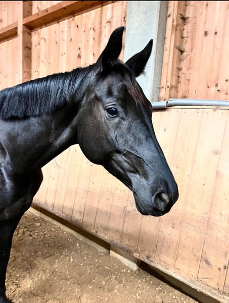 👑 TRAKEHNER ELITE VOM ZÜCHTER: MILLENNIUM x KOSTOLANY-Linie 👑 Vb.-Anwärterin, A-platziert & Allround-Traum! Eckdaten: • Name: Moro • Rasse: Trakehner (Original) • Geschlecht: Stute • Alter: 6 Jahre • Stockmaß: ca. 1,69 • Farbe: Tiefschwarzer Rappe • Abstammung: Elitehengst MILLENNIUM x KOSTOLANY • Titel: Verbandsprämienanwärterin Beschreibung: Wir bieten eine absolute Ausnahmeerscheinung direkt aus unserer Zucht: die bildschöne, typvolle und tiefschwarze ,,Moro“. Sie ist das ultimative Sportpaket für den anspruchsvollen Turnierreiter, der höchste Qualität in Dressur, Springen und/ oder Gelände sucht. Das Zucht-Highlight: Weltklasse-Dressur-Genetik • Elternhaus der Spitzenklasse: Dieses Pedigree ist eine Sensation! Der Vater Elitehengst Millennium (aktuelles Dressur-Genie) trifft auf die Linie des legendären Elitehengstes KOSTOLANY , der für überragende Rittigkeit und das Fundament der modernen Dressurzucht steht. • Zuchtperspektive: Durch diese Elite-Abstammung und ihren Titel Verbandsprämienanwärterin ist sie nicht nur ein Top-Sportler, sondern eine hochkarätige Stute für die Elite-Trakehner-Zucht. Ihre Erfolge im Sport: • Grandioser Bewegungsablauf: Drei herausragende Grundgangarten, die mit wiederholten guten Nnoten belohnt wurden. Sie ist A-Dressur platziert und bringt exzellentes Potential für die schwere Klasse mit. • Vielseitigkeits-Profi: Der geborene Allrounder! Sie hat bereits Vielseitigkeitserfahrung im Gelände, springt sehr gerne und zeigt den nötigen Mut und die Ausdauer, um in dieser Disziplin zu bestehen. • Nervenstärke: Moro ist extrem verlässlich, geht brav und unerschrocken ins Gelände und ist auf dem Turnier immer brav. Ihre Basis: Ehrlich und Transparent • Aus eigener Zucht & Ausbildung: Wir haben sie von der Geburt an begleitet, selbst angeritten und altersgerecht gefördert. Sie ist ein ehrliches, menschenbezogenes Pferd. • Familienbesichtigung: Mutterstute und Geschwister können vor Ort besichtigt werden. Ideal für: Den ambitionierten, erfahrenen Reiter (kein Anfängerpferd!), der ein hochqualifiziertes Pferd für den gehobenen Dressur- oder Vielseitigkeitssport mit klarer Zuchtperspektive sucht. Direkt vom Züchter. Für weitere Informationen, Videos und zur Vereinbarung eines Kennenlerntermins kontaktieren Sie uns gerne per Whats App unter 01623943092. Pferd steht in 82255 Fürstenfeldbruck