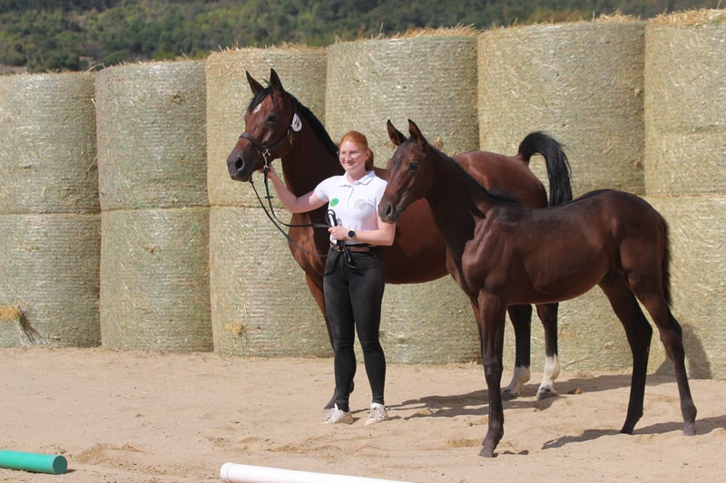 Kerala ist ist eine Enkelin der Pr.St. Kendy II v. E.H. Michelangelo, einer Vollschwester des Siegerhengstes von 1991 KENNEDY und des gekörten Kensington. Weitere Vertreter dieser Familie sind u.a. Hengste, wie der Silbermedaillengewinner der Panamerikanischen Spiele Kronjuwel II und der bis Grand Prix erfolgreiche Kir Royal. Ihre Urgrossmutter Kordelia IV v. Mackensen stand als Siegerstute im Mittelpunkt der ZSE Rheinland. Mutter Kampala ist eine der wenigen Töchter des Weltcuphengstes Polarion TSF, dem Vater des Elitehengstes Grafenstolz. Kerala ist eine von vier Töchtern der grossrahmigen Kampala und Vollschwester zur Pr.A. Kathmandu v. Sturmklang, sowie Halbschwester der bewegungsstarken Kronjuwel v. E.A. Sweetwaters Ziethen TSF, die mit 56,6 Punkten hochbonitiert die Fohlenkollektion in Neumünster bereicherte (NMS 2021/73). Vater STURMKLANG wurde leider als junger Hengst nicht weiter gefördert. Nach erfolgreicher HLP und Körung, erzielte er erste Erfolge in Reitpferde- und Springpferdeprüfungen bis Kl. A** unter Fabian Lipsky. Er stammt aus der weitverzweigten und sehr wertvollen Familie 0170A der Schwindlerin (Elxnat, Hohenkirchen). Seine Mutter ist die St.Pr.u.Pr.St. STÜRMISCHE v. Matador. Mit ihrer nicht allzu verbreitete Abstammung über Matador, Grandezzo, Solling und Ernest weist sie viel Trakehner Springblut auf, das diese Stute ihren Nachkommen mitgab. Mit Altan I, Absalon und Abendstern findet man Vererber der typvollsten Linien der Trakehner Zucht in ihrem Pedigree. Neben eben diesem Typ, den Sturmklang sicher vererbt, sind alle seine Nachkommen mit drei sehr guten Grundgangarten ausgestattet, verfügen über korrekte Fundamente und besitzen darüber hinaus Springtalent. Der bis zu seinem Einsatz in unserem Gestüt wenig genutzte Sturmklang überzeugt mit seinen nunmehr in der Trakehner Zucht debütierenden Töchtern, die vielfach als Prämienanwärterinnen eingetragen wurden und die wiederum bereits hochbonitierte Fohlen lieferten. Als Vertreterin dieser Dohna’schen Stutenfamilie ist Kerala zudem ein züchterisches Juwel mit seltener Blutführung. Kerala brachte am 11.05.2025 ein sehr gutes Hengstfohlen von Dalton Vra AA zur Welt. Er ist ein leistungsgeprüfter Anglo-Araber, der in Dänemark sowohl in Dressur wie auch Springen Erfolge bis zur Kl. M vorweisen kann. Vater von Dalton Vra AA ist der Shagya-Araber Dartan. Diese Hengstlinie geht zurück auf den Araberhengst DAHOMAN, geboren 1846. Die Dahoman-Linie zeichnet sich durch einen starken Rahmen, hervorragende Knochen, Zähigkeit und Ausdauer aus. Seine Mutter Donna Vra AA ist eine Tochter des im Springsport hocherfolgreiche DON-CASTER AA von DORPAS AA, intl. Springen bis Klasse S** mit Dirk Schröder (u.a. 1.Platz CSI Neustadt/Dosse). DON-CASTER AA ist auch Vater von JUMEAUX RH AA (Springen in VS bis Kl. M2*) und ein mütterlicher Halbbruder zu BONAPARTE N AA, NABUCCO AA. Seine Grossmutter Piroutte Vra AA stammt von PRIMUS AA, ein Sohn des berühmten MATCHO AA (NK-LGS 578.029,-- €), dessen Nachkommen vielmals in Dressuren hocherfolgreich waren. Er ist Vater von 37 S-Dressurpferde, 8 S-Springpferde, 1 S-VS-Pferd und 7 S-Fahrpferden, hauptsächlich Hannoveraner. Weitere Infos zu Dalton Vraa unter diesem Link: https://www.sweetwater-stud.com/dalton-vra-aa ZB Bewertung: 7,5/7,0/7,0/7,5/8,0/7,0/7,5/51,5 ZL 2/2 Fam.: O23E1 Korda zu Dohna-Schlobitten Die Stute wird, da Sie ein Fohlen bei Fuss führt, erst nach dem Absetzen des Fohlen in einen neuen Stall umziehen können. Bei Interesse senden wir gerne weitere Fotos und Videos der Stute und des aktuellen Fohlens. Warum "Preis auf Anfrage"? Scheuen Sie sich nicht uns wegen unserer Preisvorstellung unverbindlich zu kontaktieren. Wir ziehen die persönliche Kontaktaufnahme vor und verzichten deshalb bewusst auf die Angabe einer Preiskategorie, da uns Platz und Perspektiven für unsere Pferde wichtig sind. Transport kann organisiert werden. Unsere Pferde shutteln oft zwischen Bulgarien und Deutschland, Schweiz oder Österreich. Daher sollte dieser Punkt das kleinste Hindernis darstellen. Wir verkauften bisher Pferde nach DE, CH, AT und Australien. Kundenzufriedenheit in diesem Punkt ist uns ebenfalls wichtig. Kontaktieren Sie uns gerne bei Interesse an weiteren Informationen, Videos und Fotos. Mobil +359 886 281 305 (auch WhatsApp) oder E-Mail: j_muehlethaler@yahoo.com