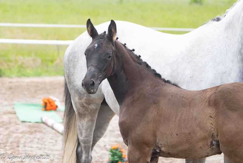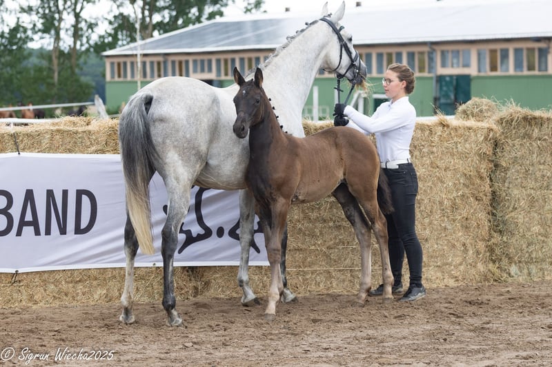 Cette adorable princesse est la fille d’un héros : son père, Finckenstein, a connu de nombreux grands succès sur les terrains de Grand Prix, notamment en 2018 en tant que membre de l’équipe danoise lors des Jeux équestres mondiaux de Tryon, aux États-Unis. Il est souvent reconnu pour ses enfants qu’ils se distinguent par un caractère exemplaire et un tempérament équilibré. À cet égard, sa fille est son ambassadrice modèle, d’une beauté éblouissante, noble et pleine de grâce – à l’image de sa noble famille maternelle. Elle se présente avec de longues jambes, légère et toujours parfaitement équilibrée, d’une souplesse remarquable. Son grand-père maternel est actuellement victorieux dans des épreuves de dressage S et s’est forgé une grande réputation en tant que reproducteur de pas et de tempérament. Sa grand-mère est une sœur utérine du prestigieux étalon de dressage Guzzi, récompensé pour ses performances en S. Elle est parfaitement développée, en excellente condition tant intérieure qu’extérieure !